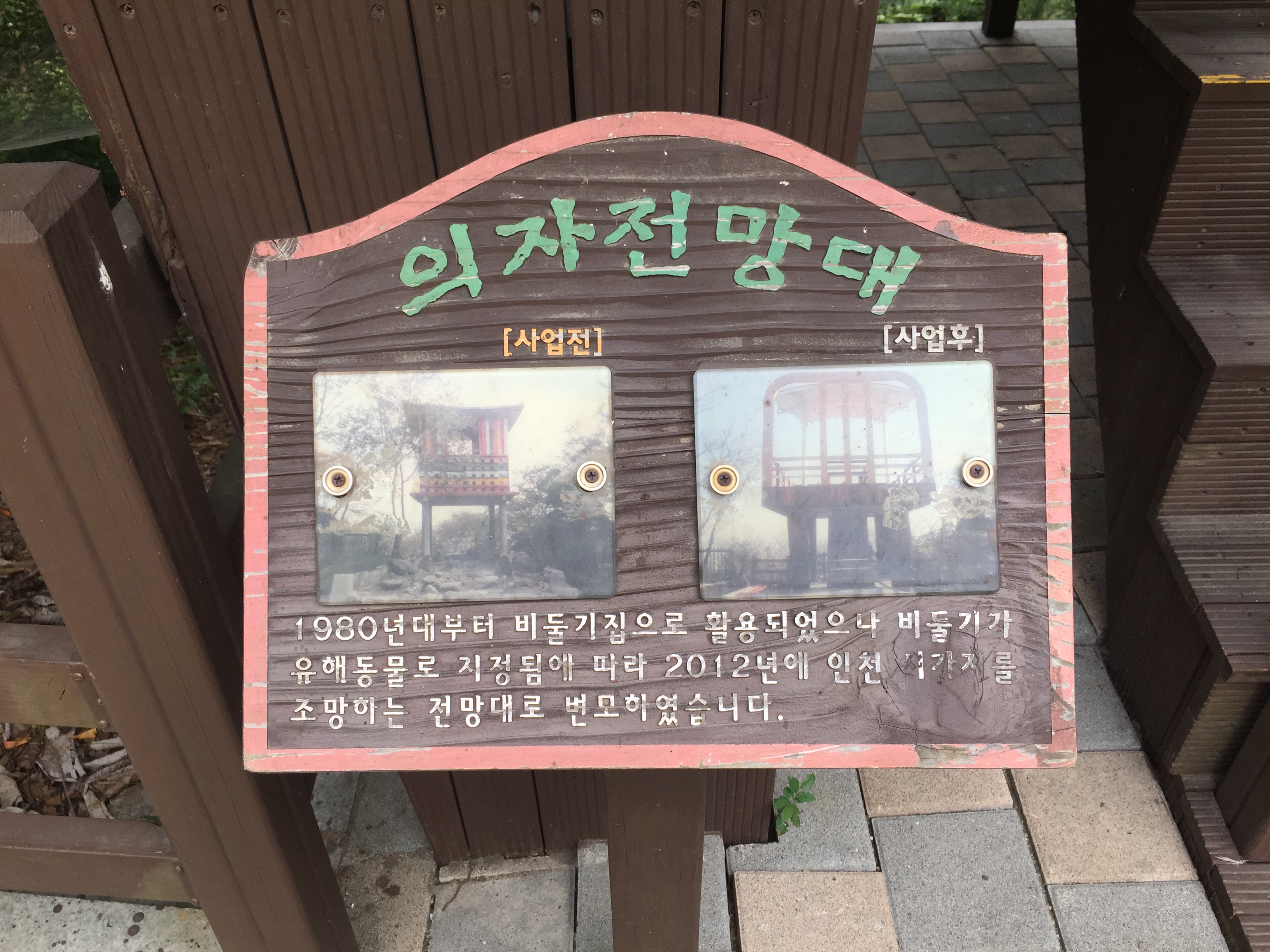 원래는 비둘기집이었다는데 비둘기가 유해동물로 지정되는 바람에 비둘기를 쫓아내고 전망대로 바꿨다네요.