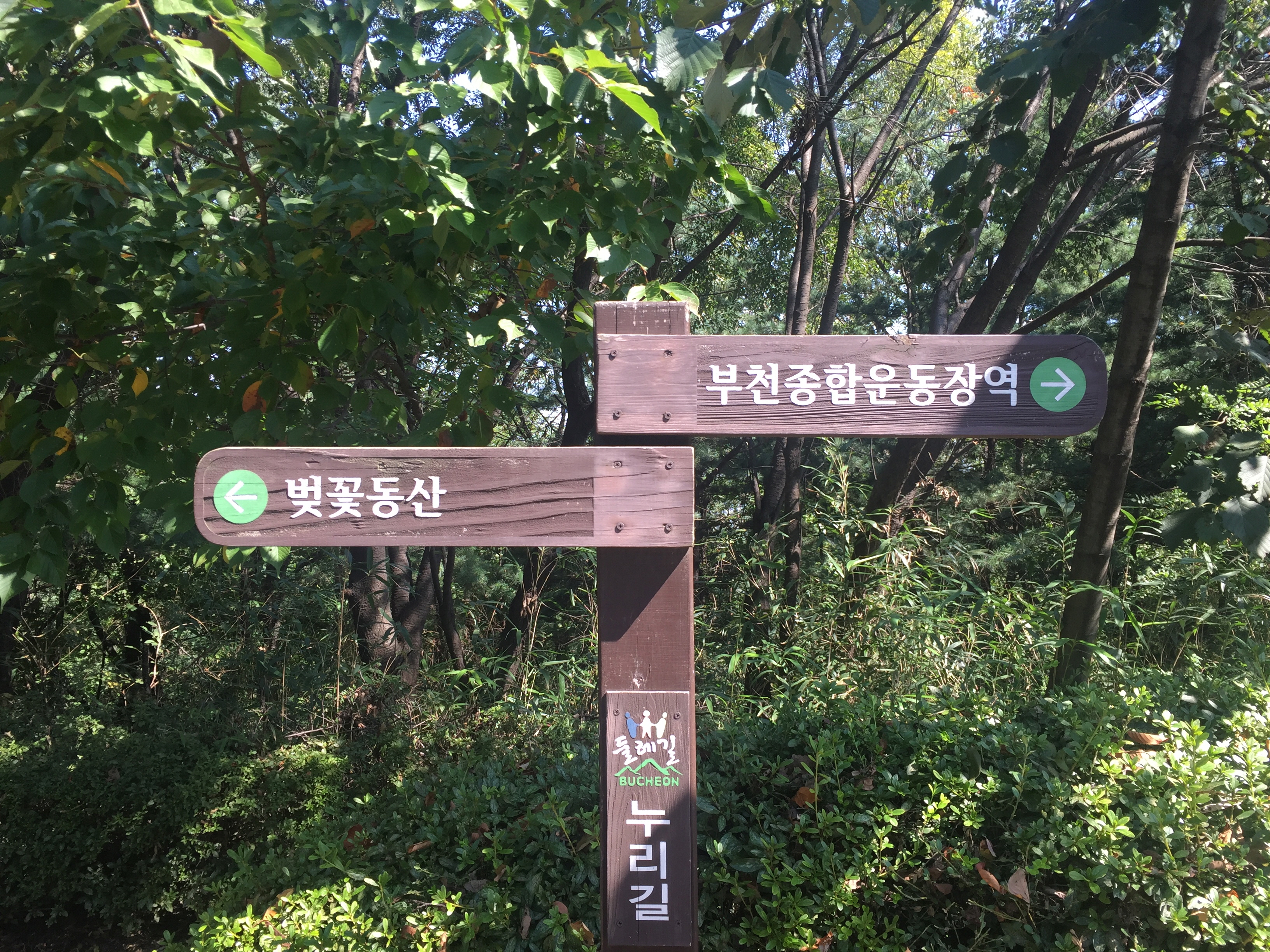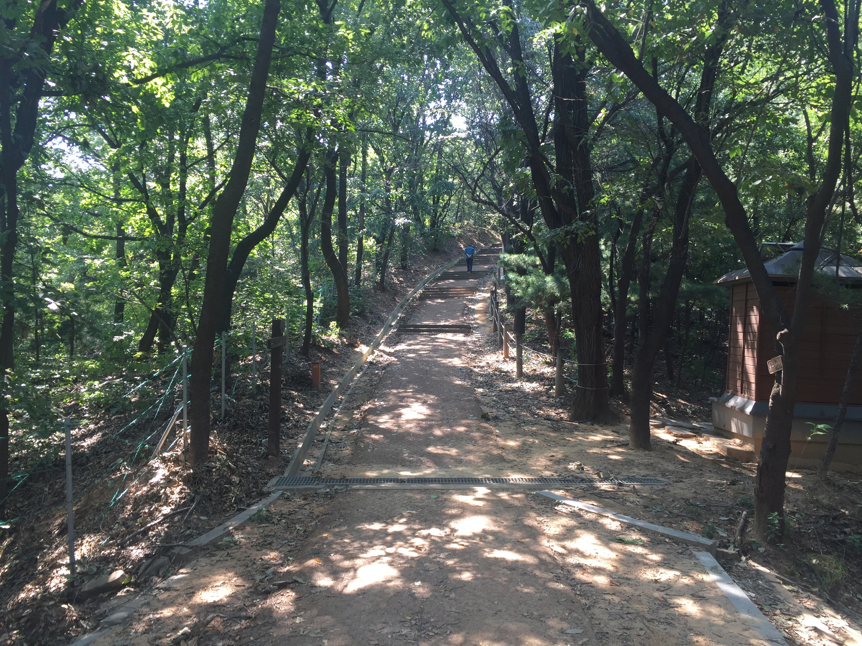 춘의산을 가로지르는 둘레길을 따라 걸어