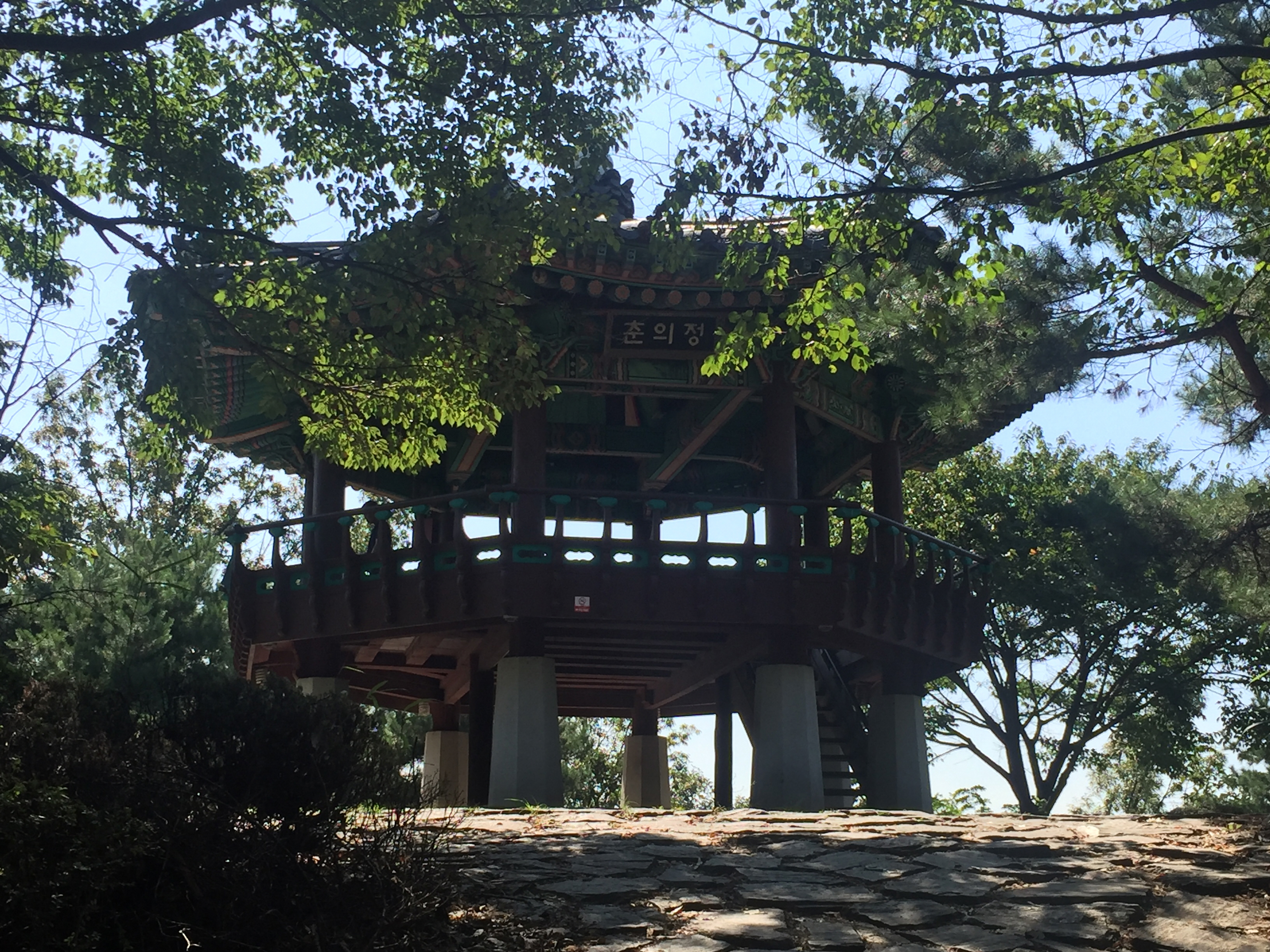 춘의상 정상에 도착하니 한 건물이 있습니다.