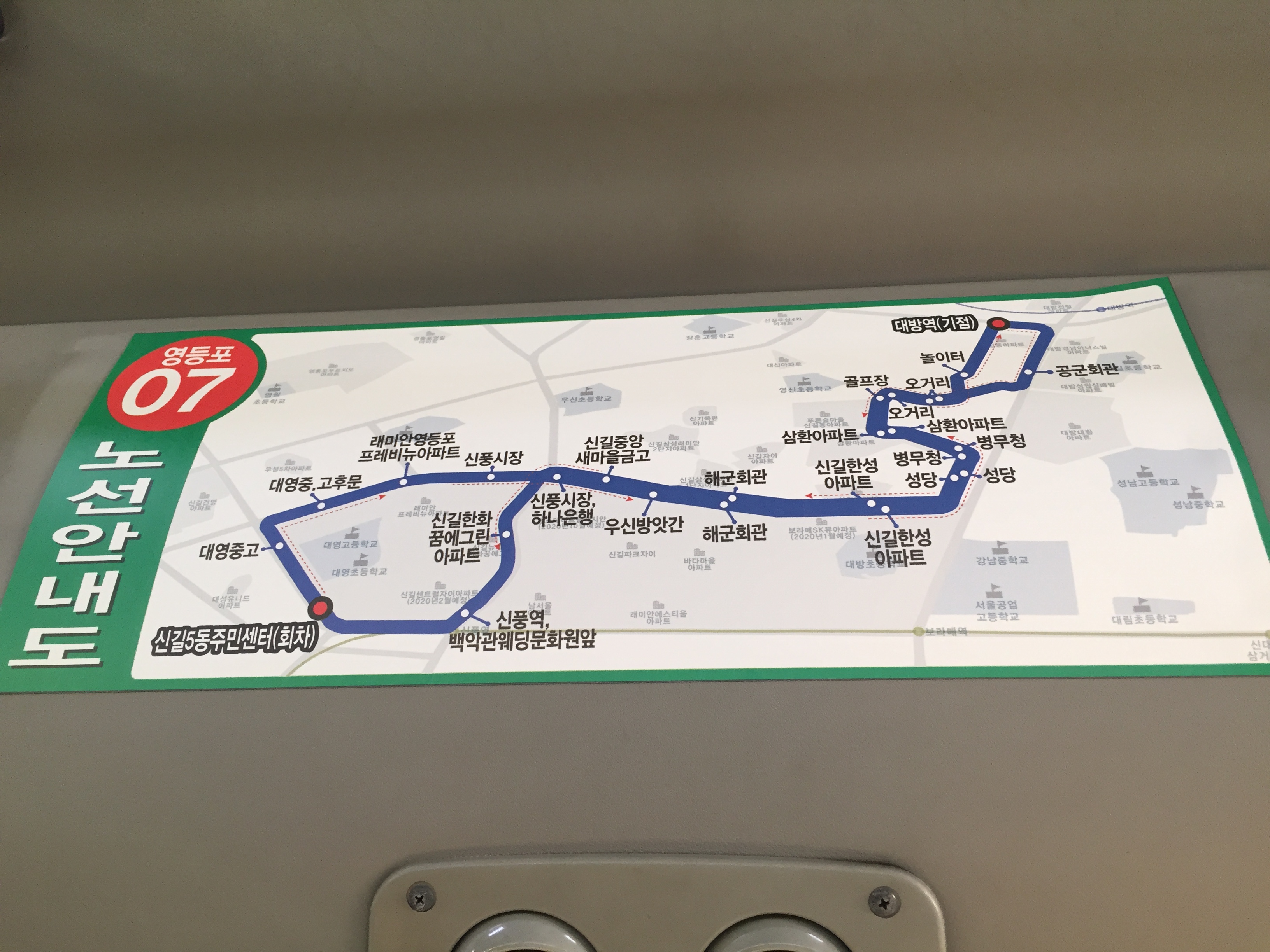 영등포07번 마을버스를 타고 밥을 먹으러 갑니다.
