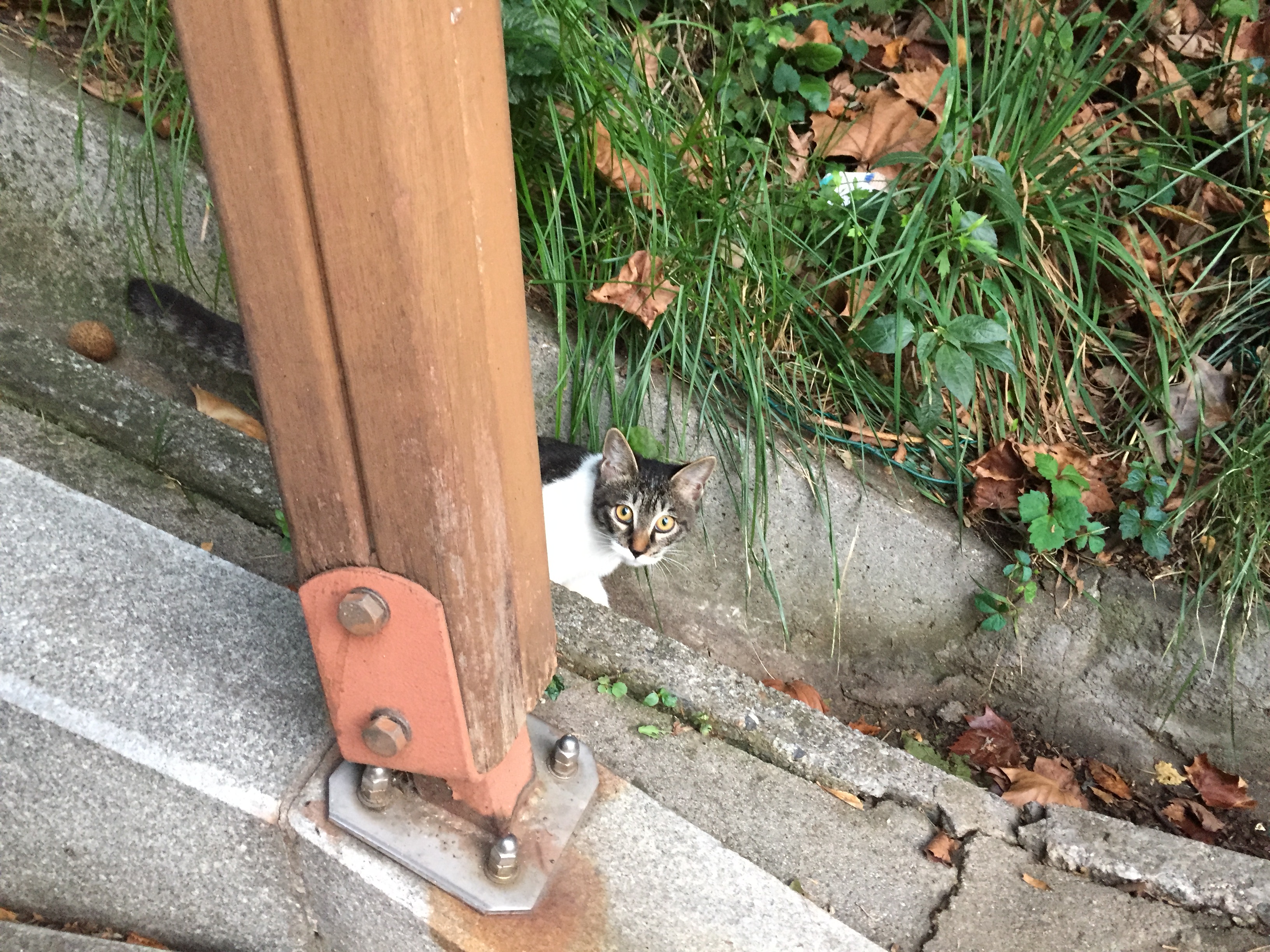배수로를 걸어가고 있던 고양이를 만나