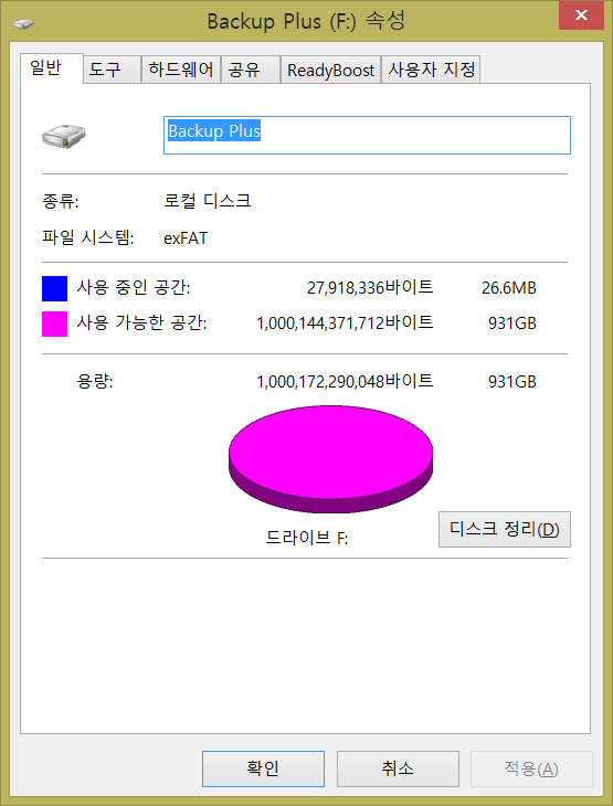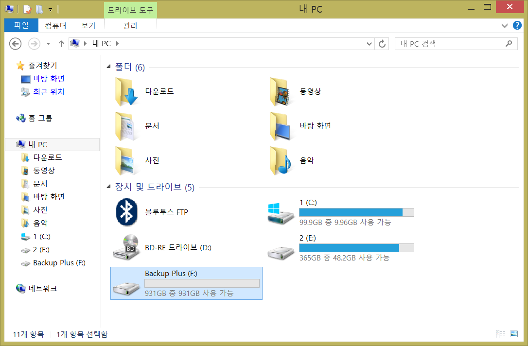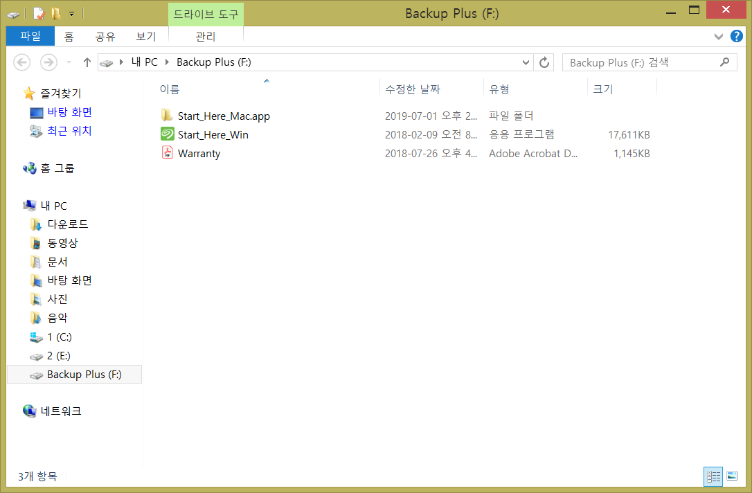 바로 컴퓨터에 USB를 꽂고 외장하드 상태를 가볍게 살펴봤습니다.