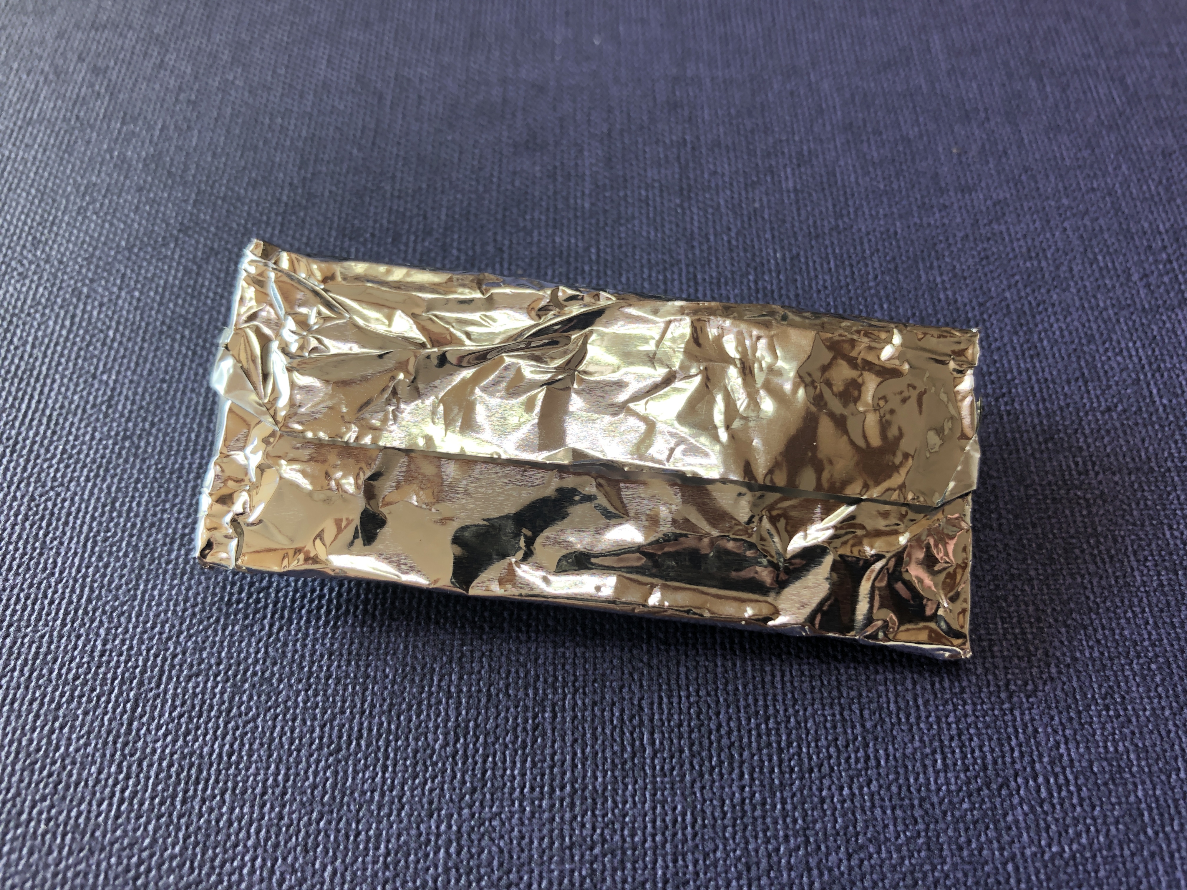 은박지로 돌돌 감싼 물건이 집에 도착했습니다.