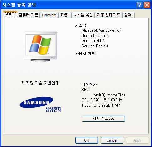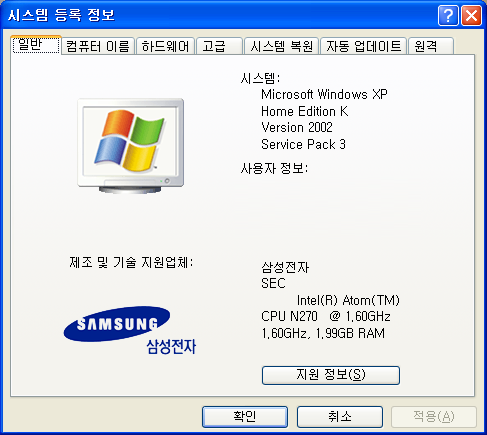 CPU는 인텔 아톰 N270이고 램은 1기가 램이 달렸습니다.