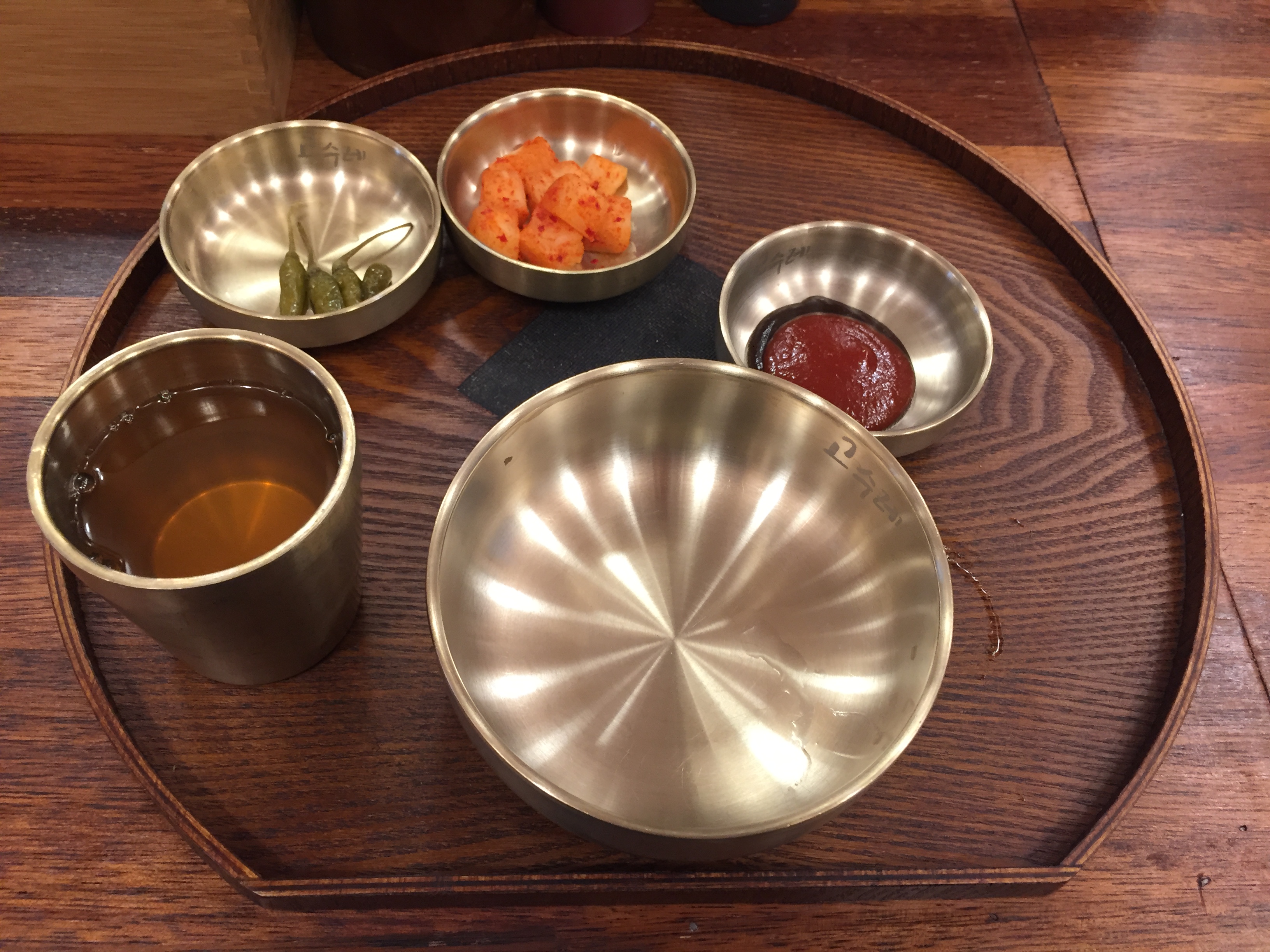 온반이 나오기 전 나온 접시에 소스를 붓고 휘휘 젓다 보니
