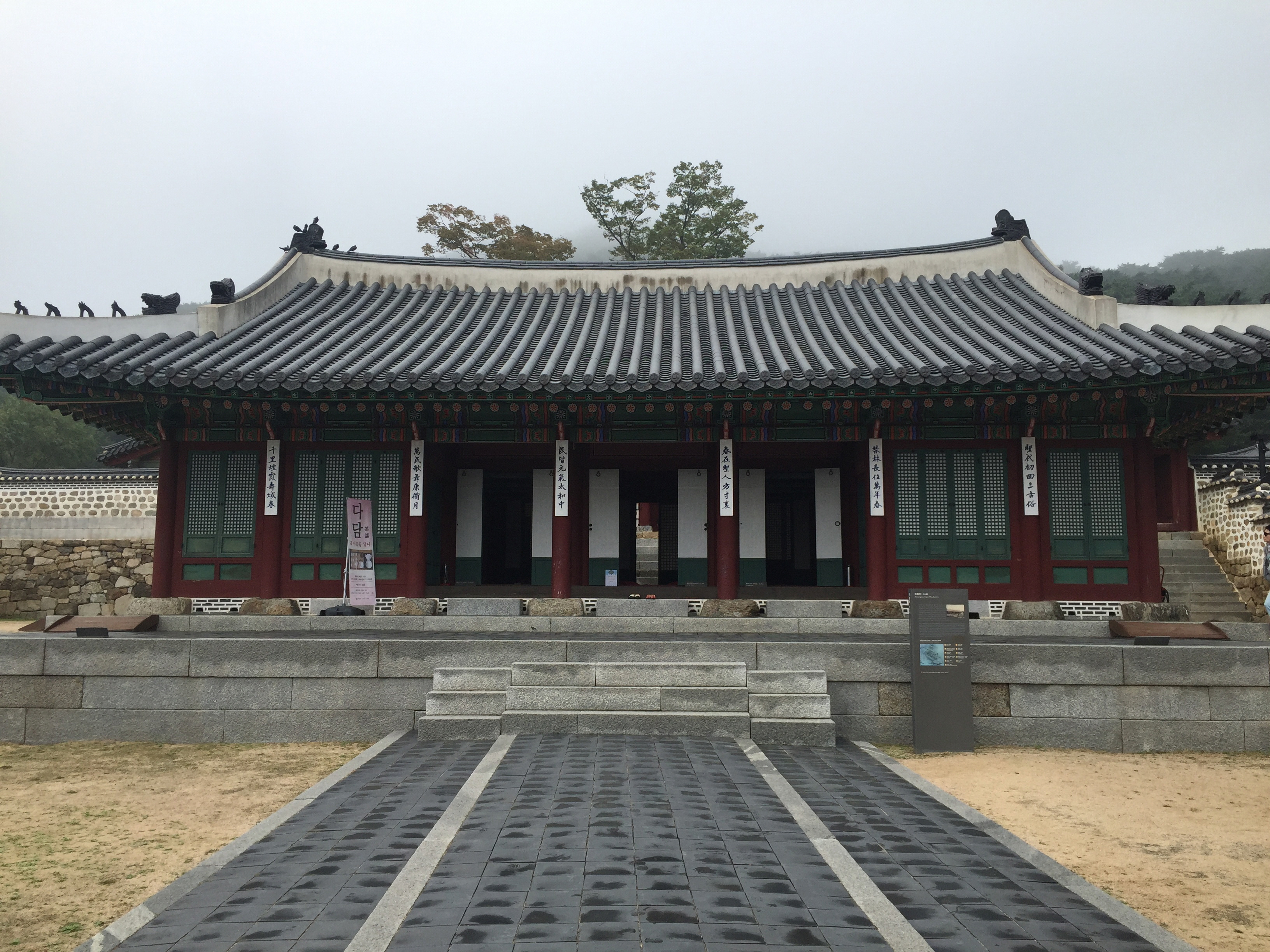 자욱하게 낀 안개 때문에 바닥에 습기가 차 땅이 미끄럽네요.