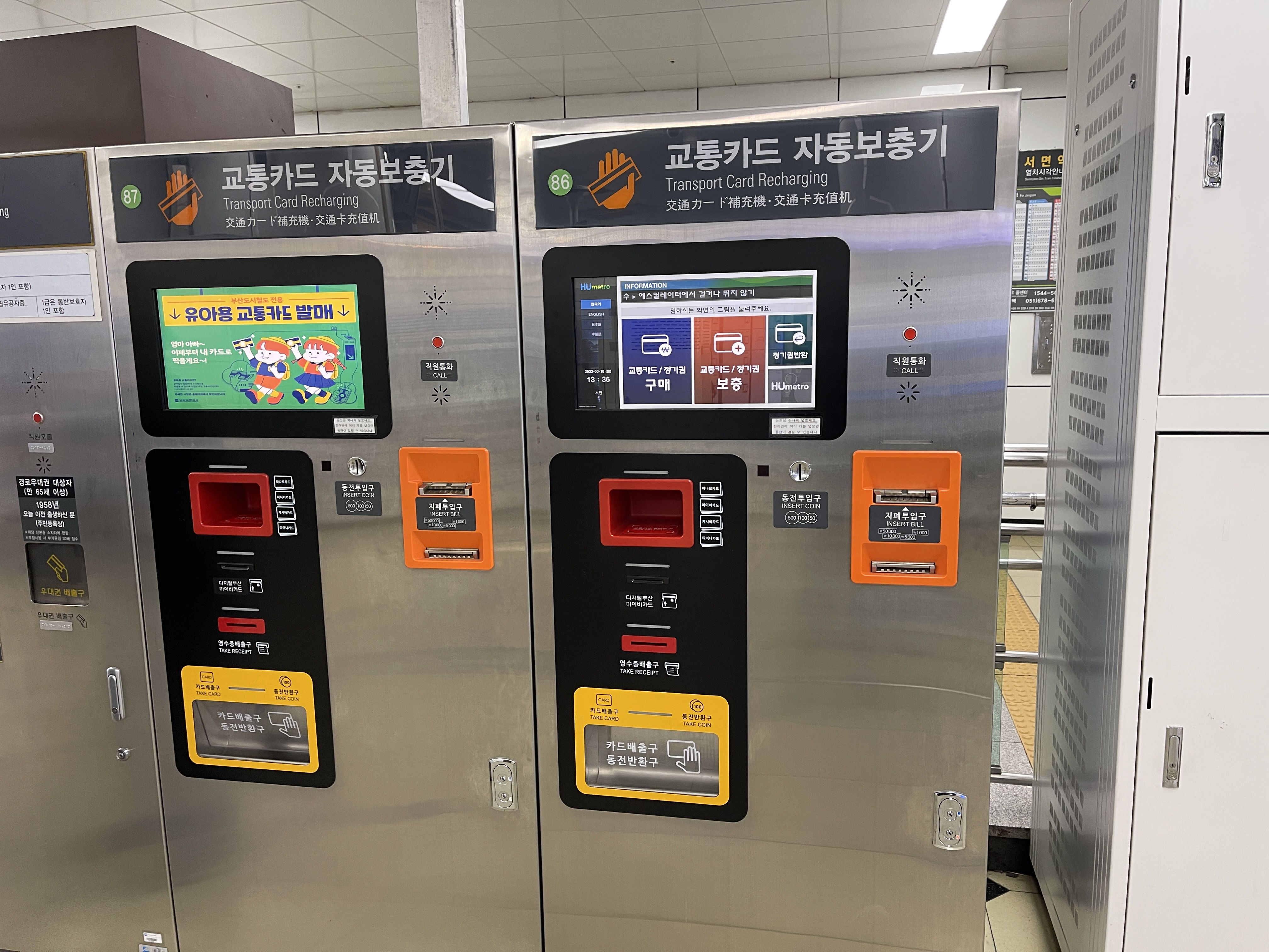 이외에 역사 내 곳곳에 있는 자판기를 이용할 때에도 교통카드를 쓸 수 있네요.