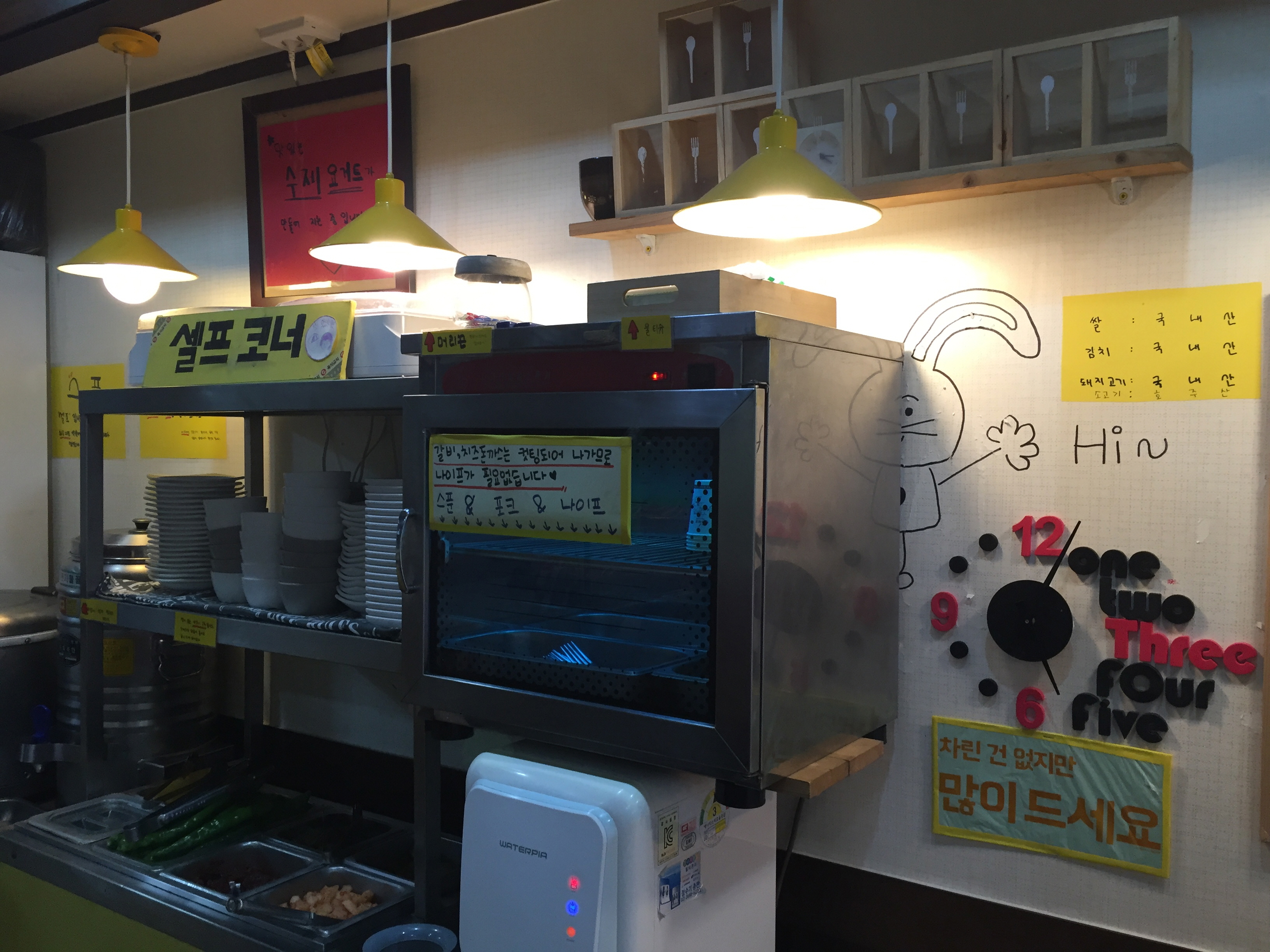 셀프바로 가서 식기와 밑반찬을 챙기는데