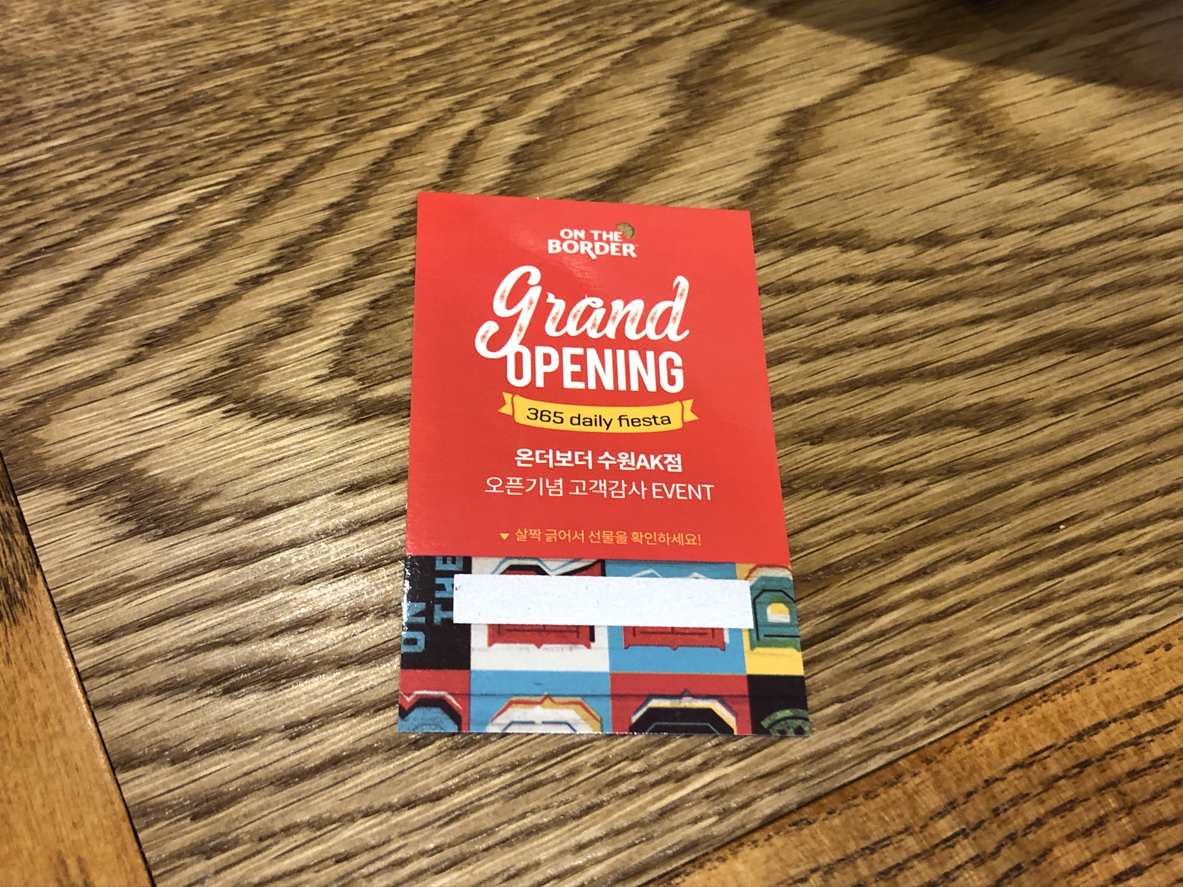 오픈 기념으로 영수증에 요런 100% 당첨 쿠폰을 끼워서 줬는데요.