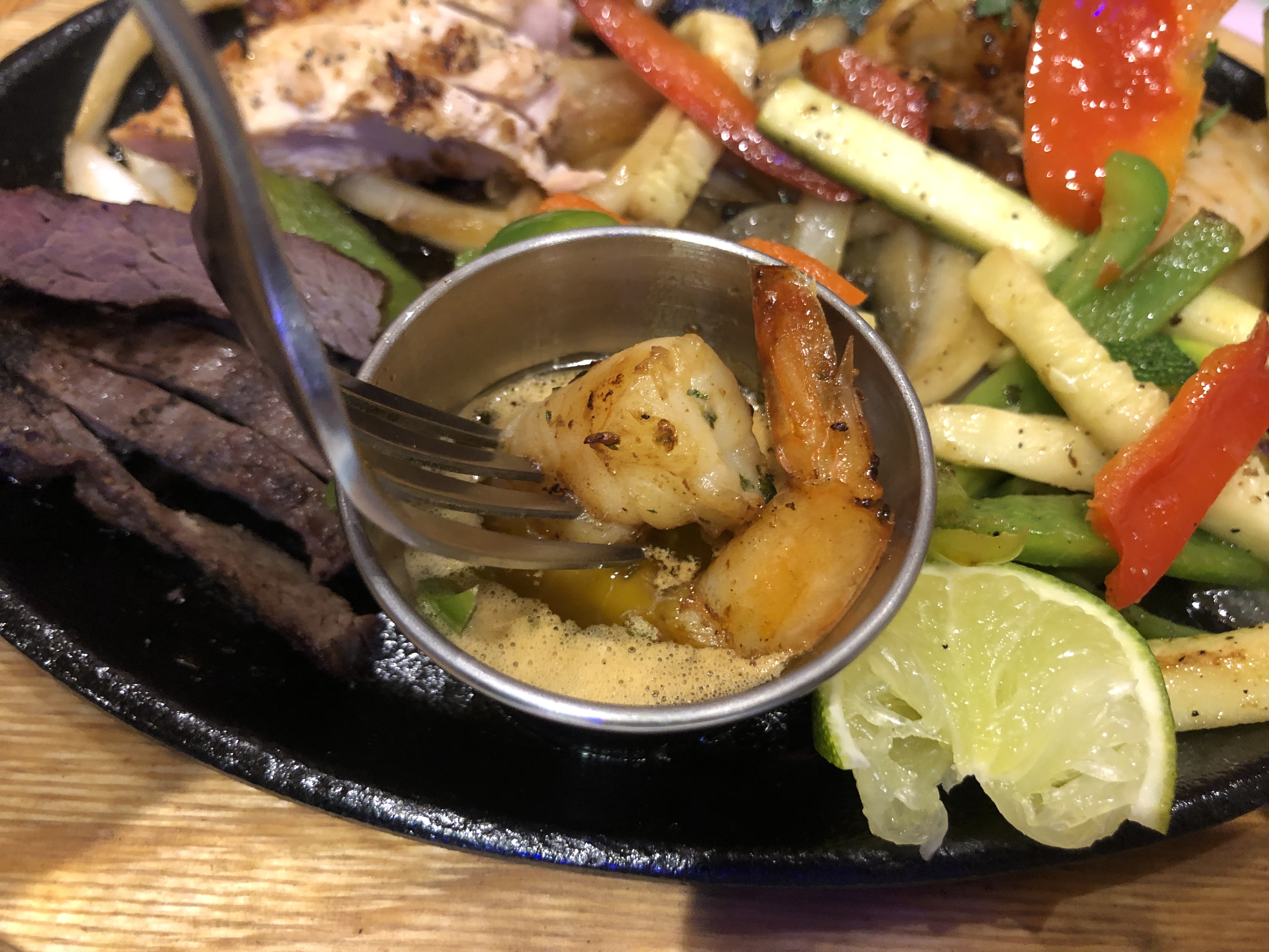 얼티밋 화이타는 소고기, 닭고기, 새우 모둠 화이타입니다.