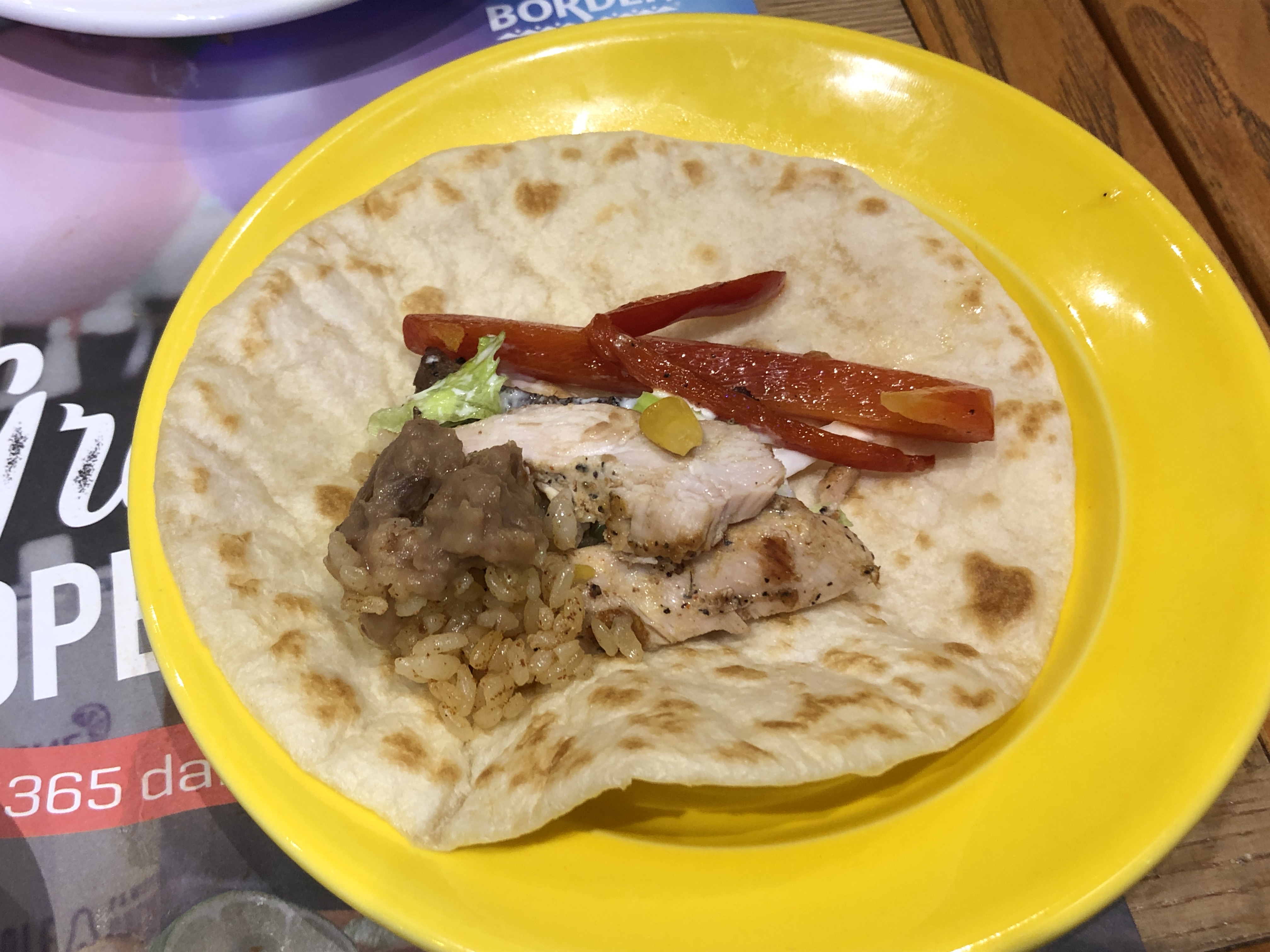 너무 작게 썰리기도 했고 토르티야에 쌓인 상태로 입으로 들어가니