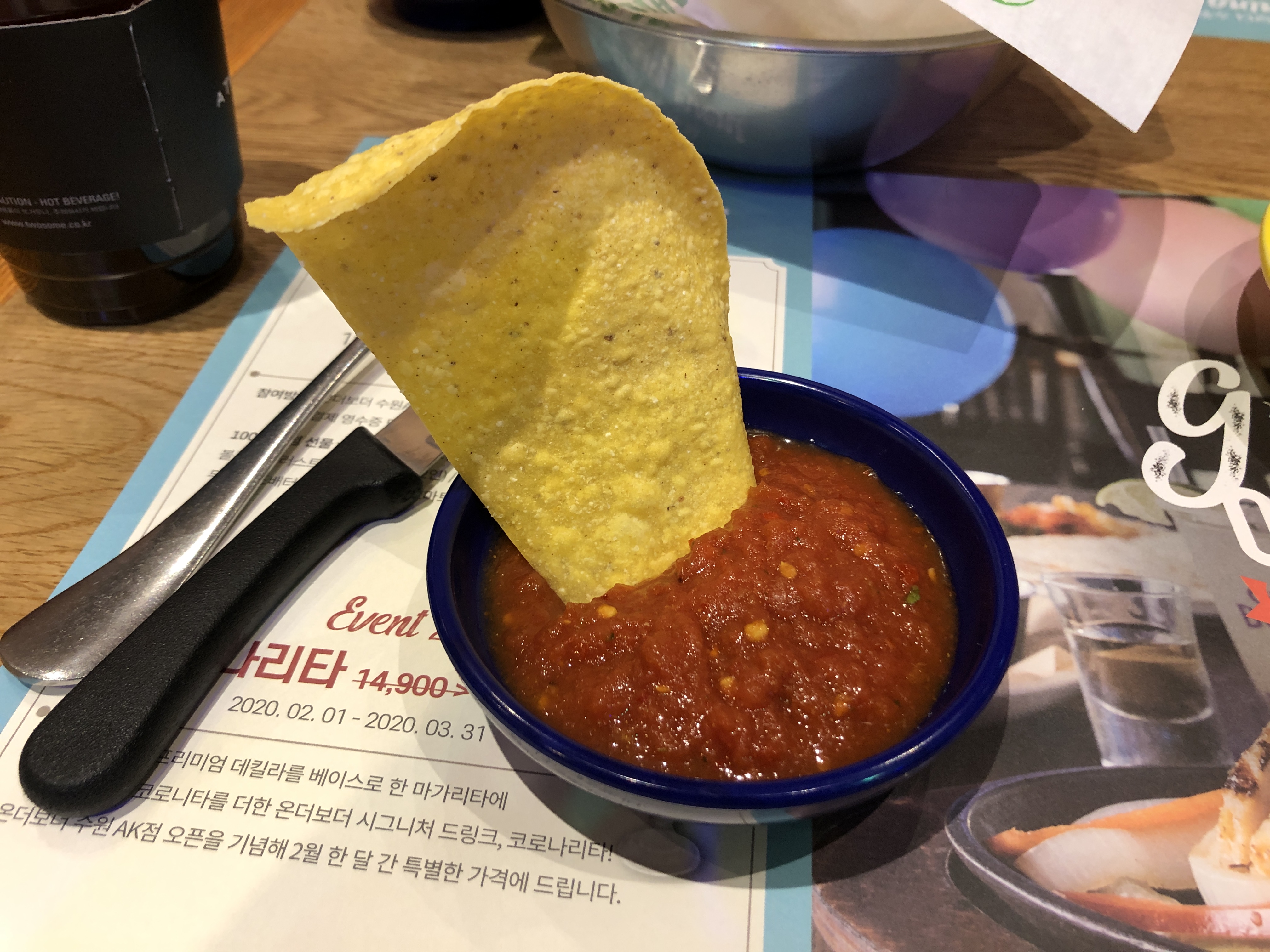 이번에는 나초를 따로 더 시키지는 않았는데 나초는 더 달라고 하면 무료로 제공해 주는 것으로 압니다.