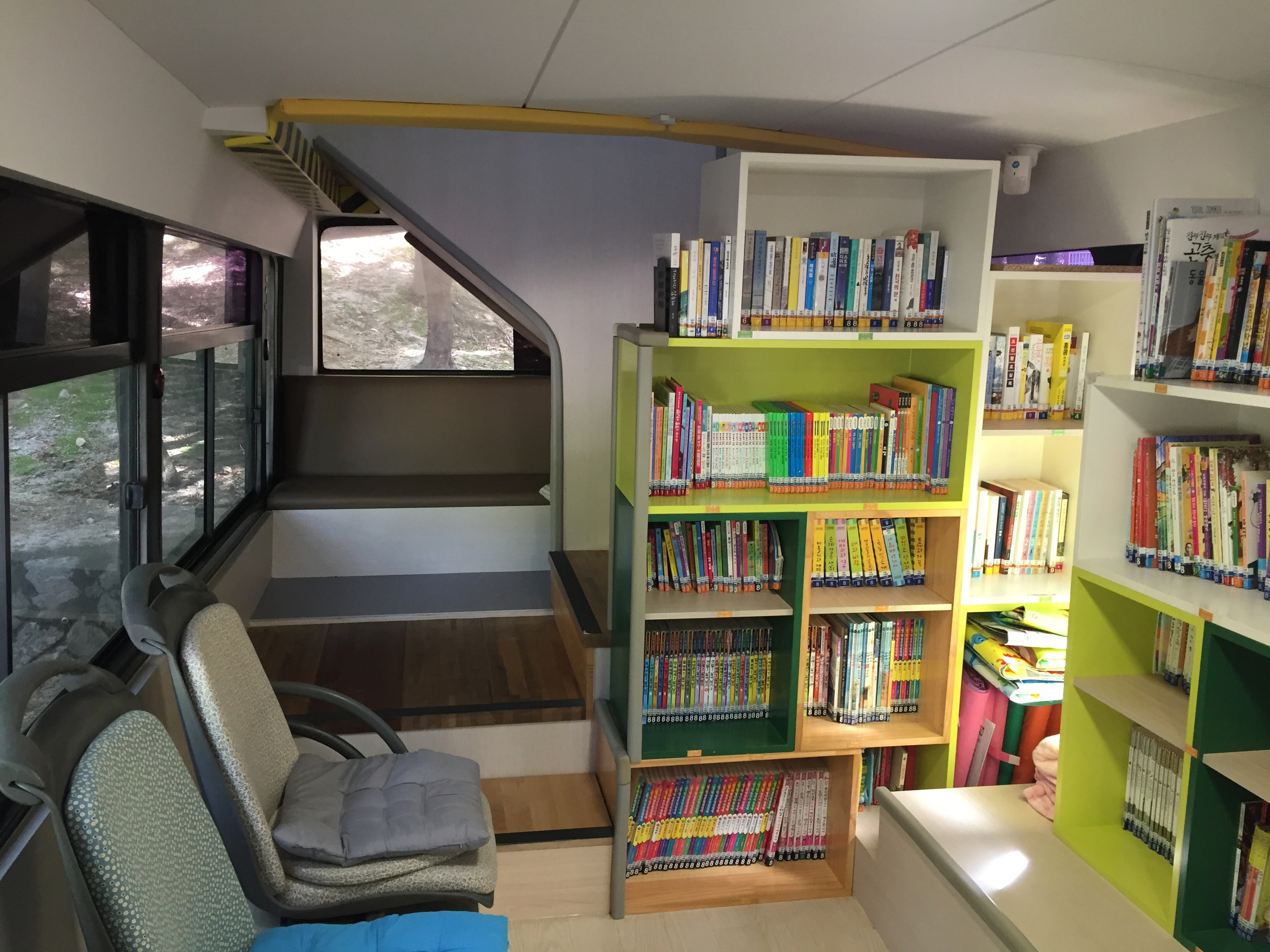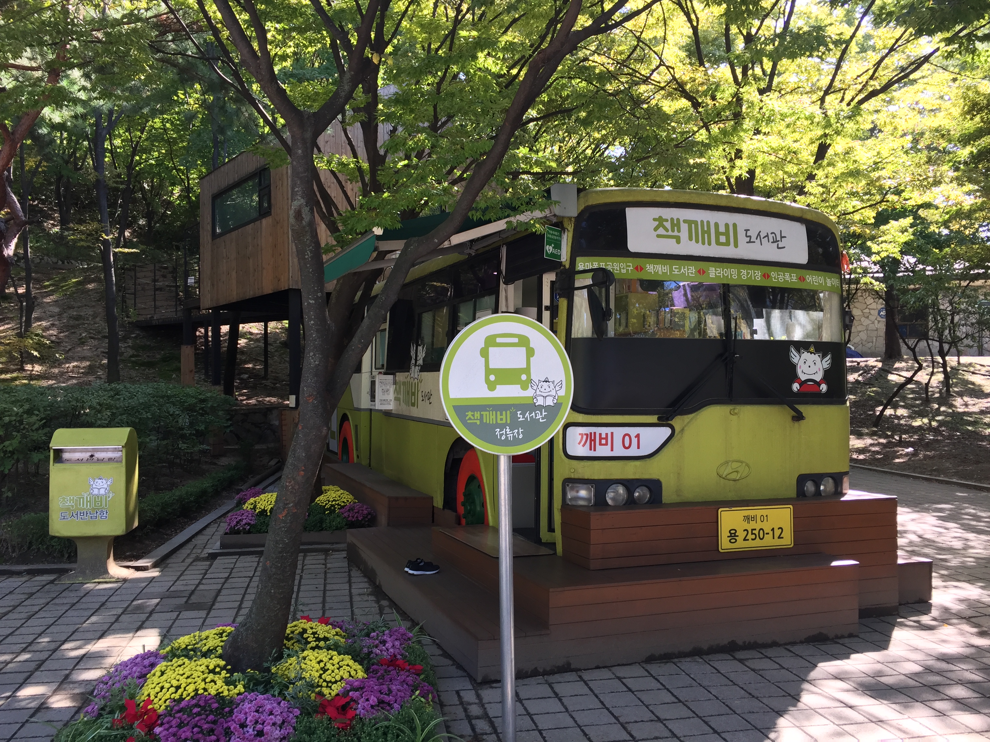 폭포 근처를 돌아다니다 버스를 개조한 책깨비도서관이 보이길래