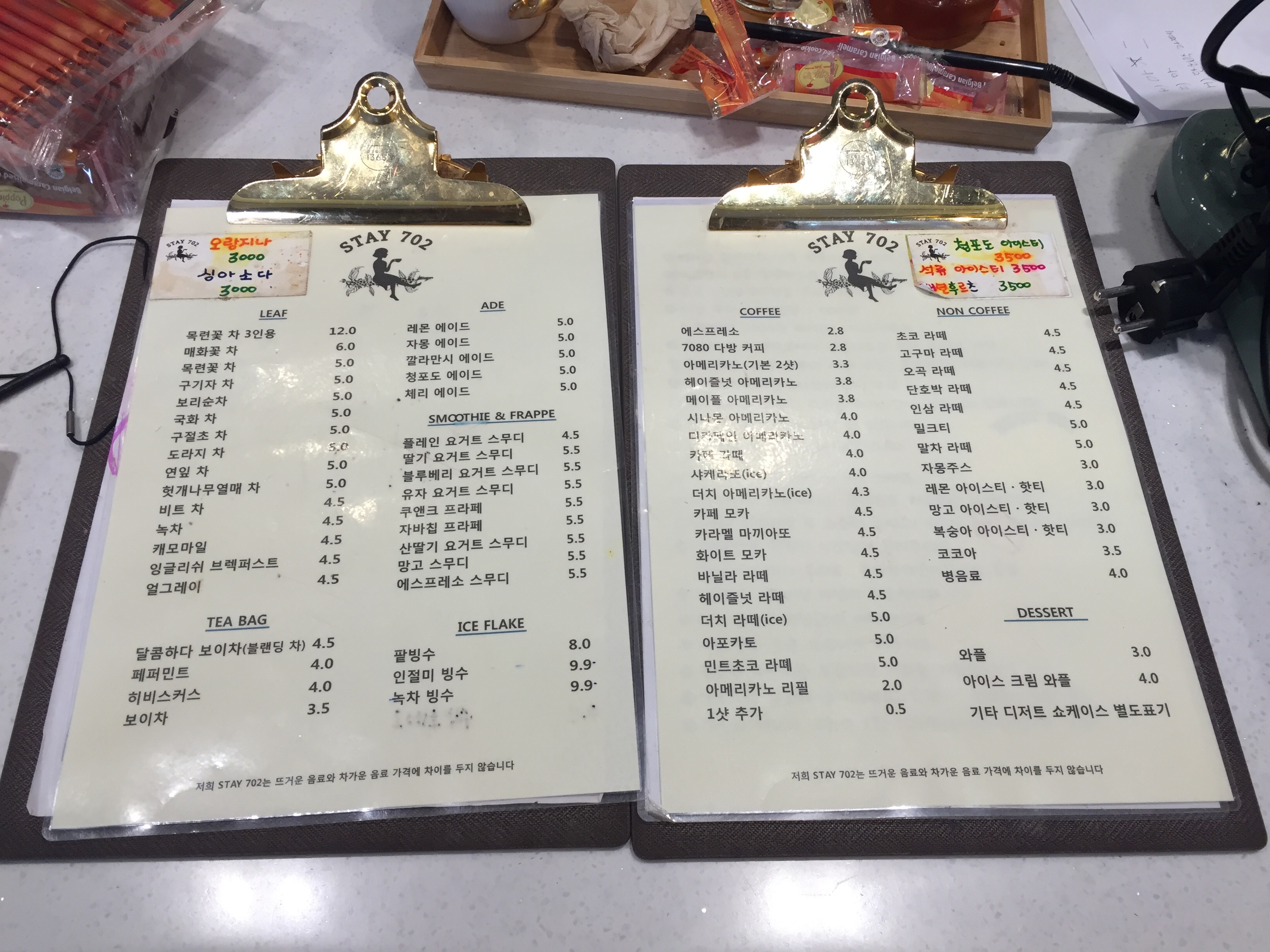 카페 주인께서 커피와 캐러멜 비스킷을 가져다 주셨습니다.