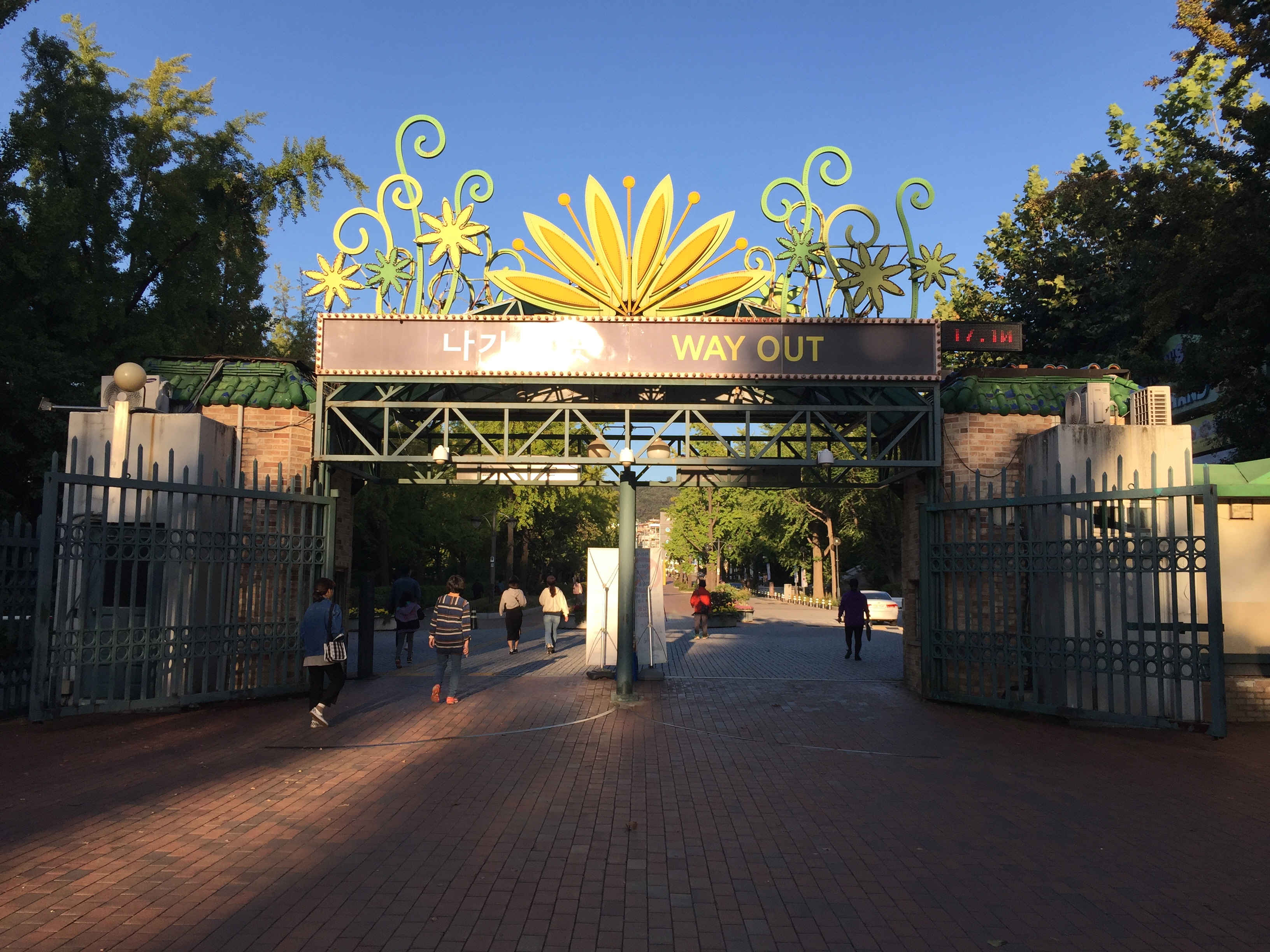 공원 정문을 지나