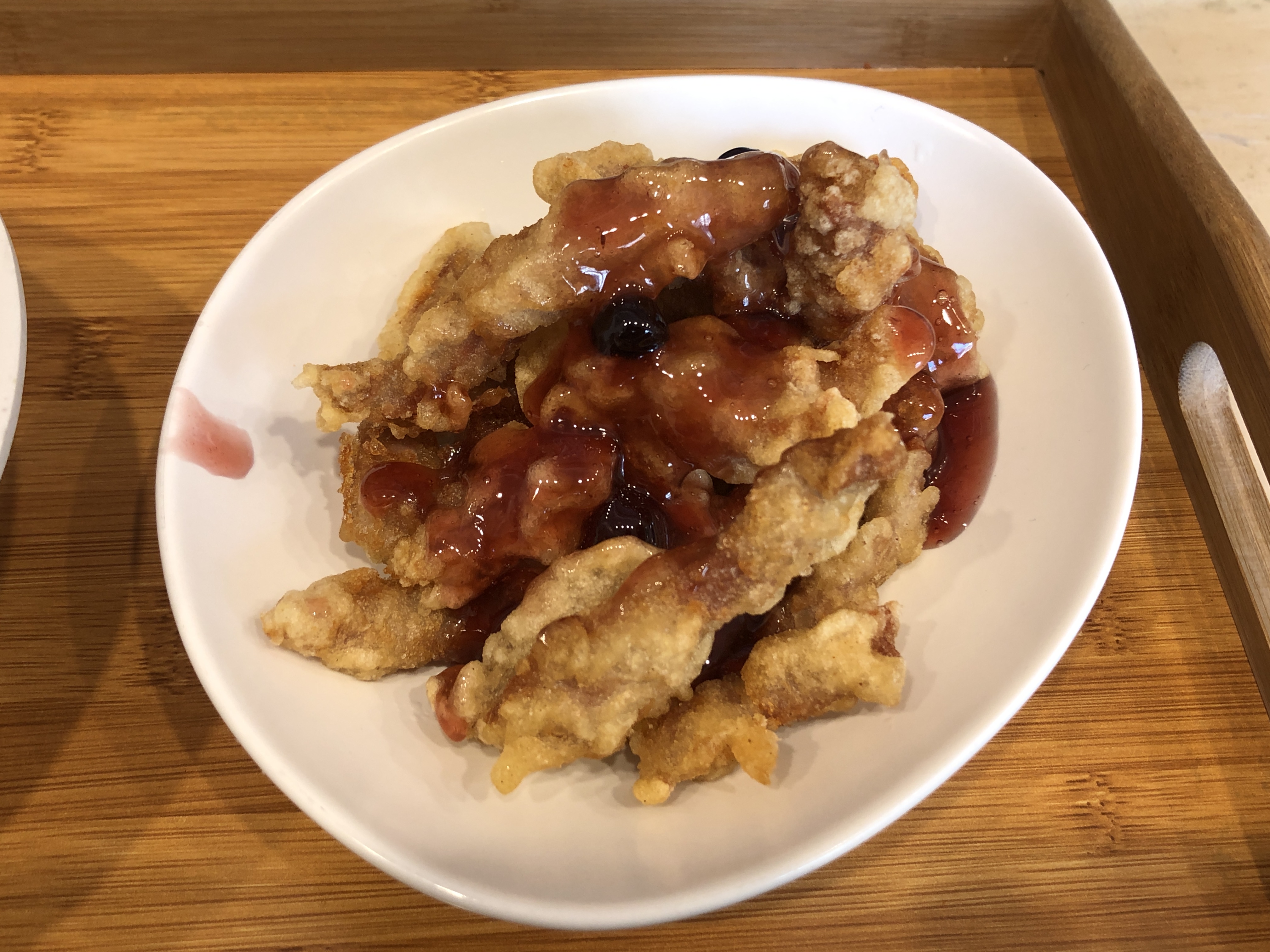 2,500원짜리 탕수육에는 특이하게도 블루베리를 넣은 소스를 뿌렸습니다.