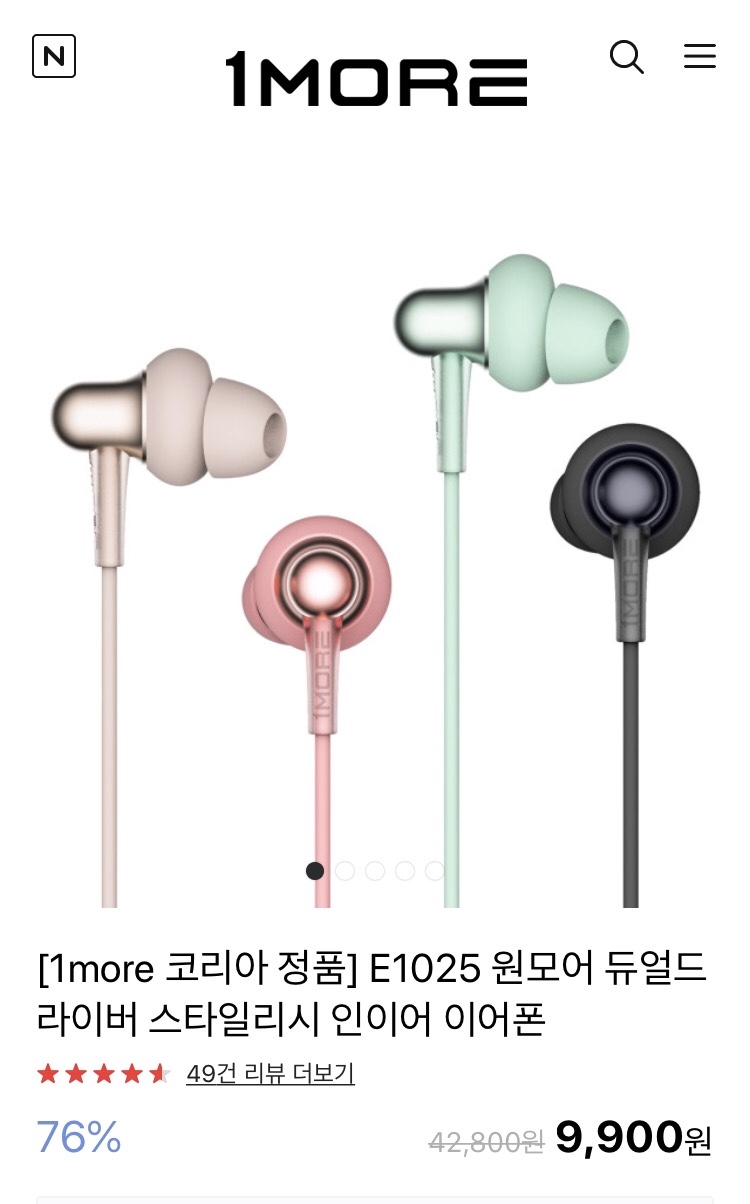 나온지 오래된 이어폰이라 원모어 공식 스토어에서도 24,700원 상시 할인 중이긴 하지만