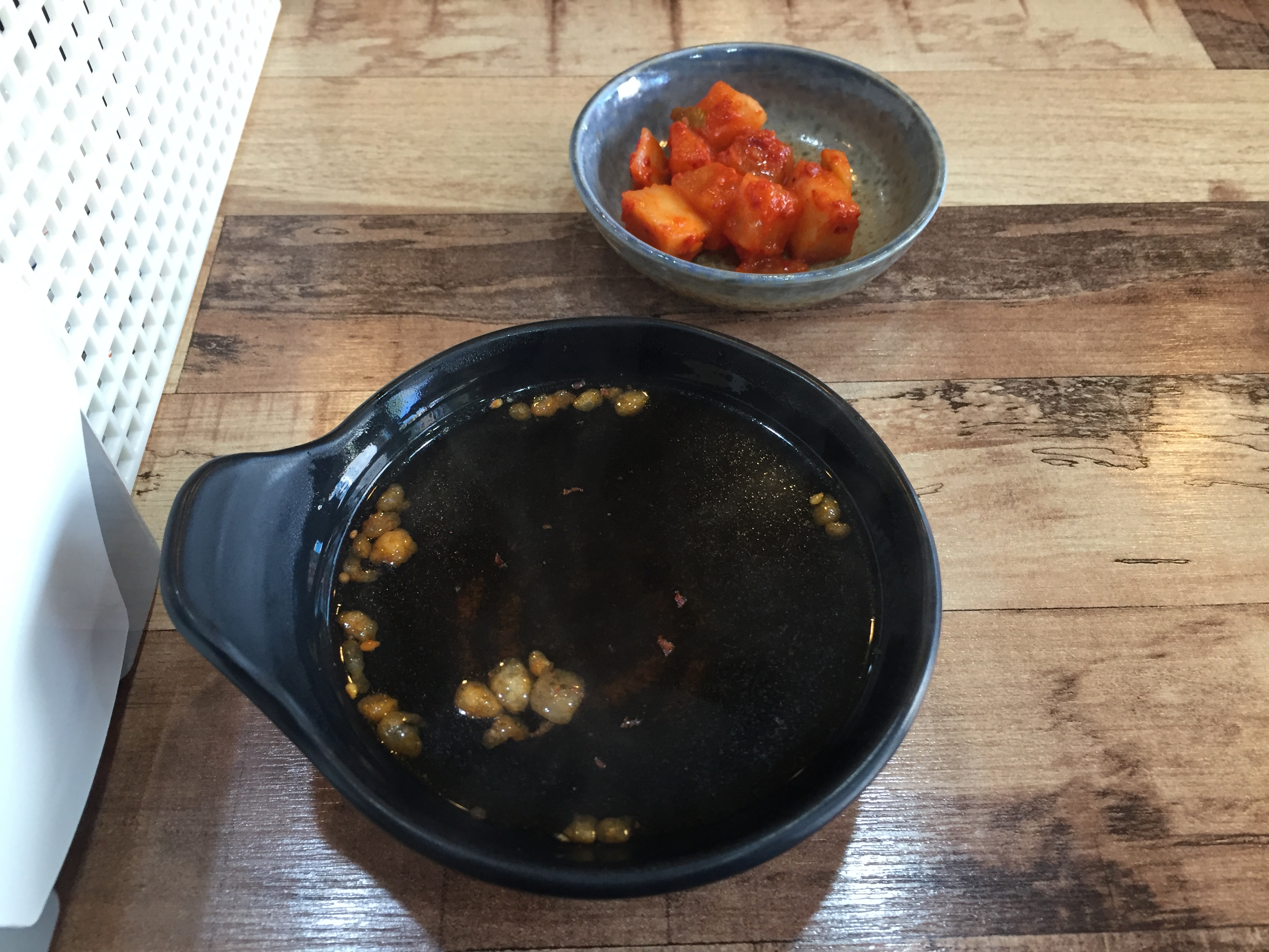 메인 메뉴가 나오기 전에 나온 우동국물을 숟가락 없이 들고 마시니