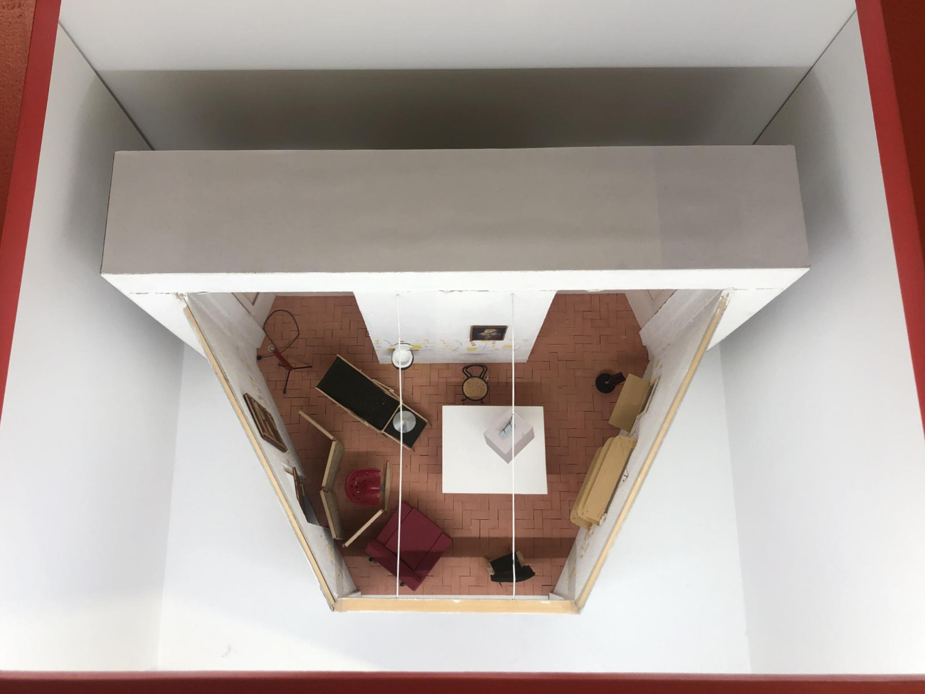 가정 공간을 축소한 모형을 상자에 넣은 뒤