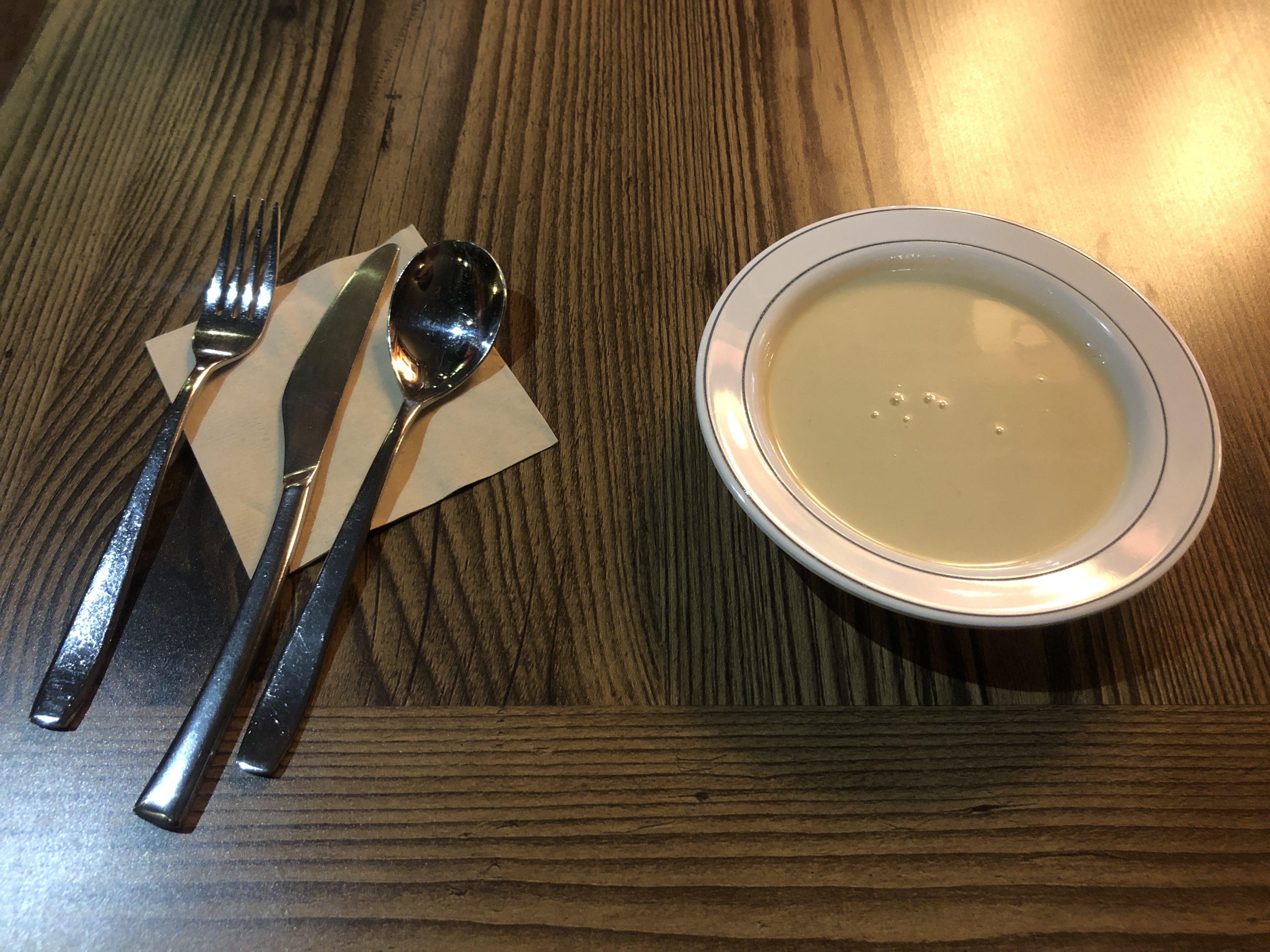 11,000원짜리 돈가스를 주문하니 경양식답게 먼저 수프가 나왔습니다.