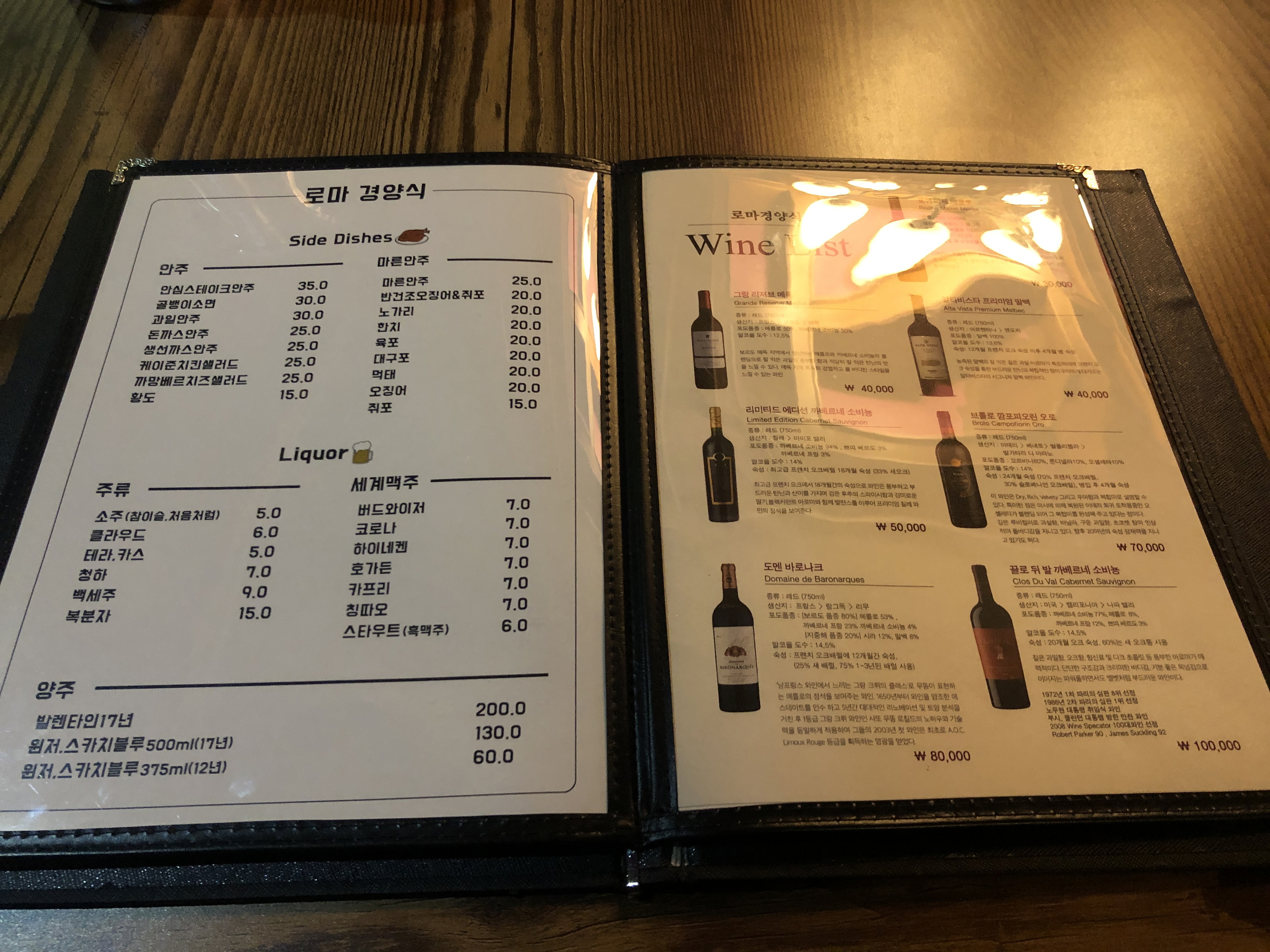 로마라는 식당인데, 간판만 봐도 오래돼 보입니다.
