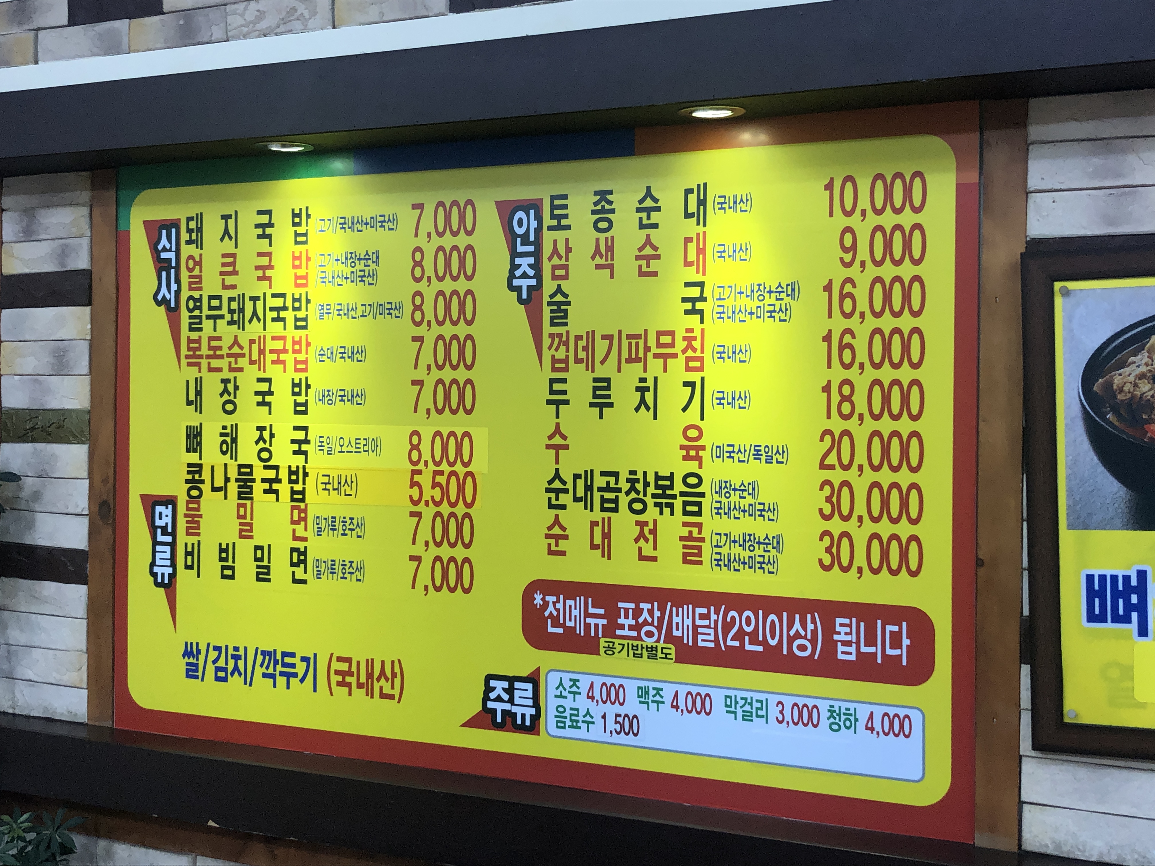 가게 밖을 보면 돼지국밥 외에 뼈해장국이니 콩나물국밥이니 등등