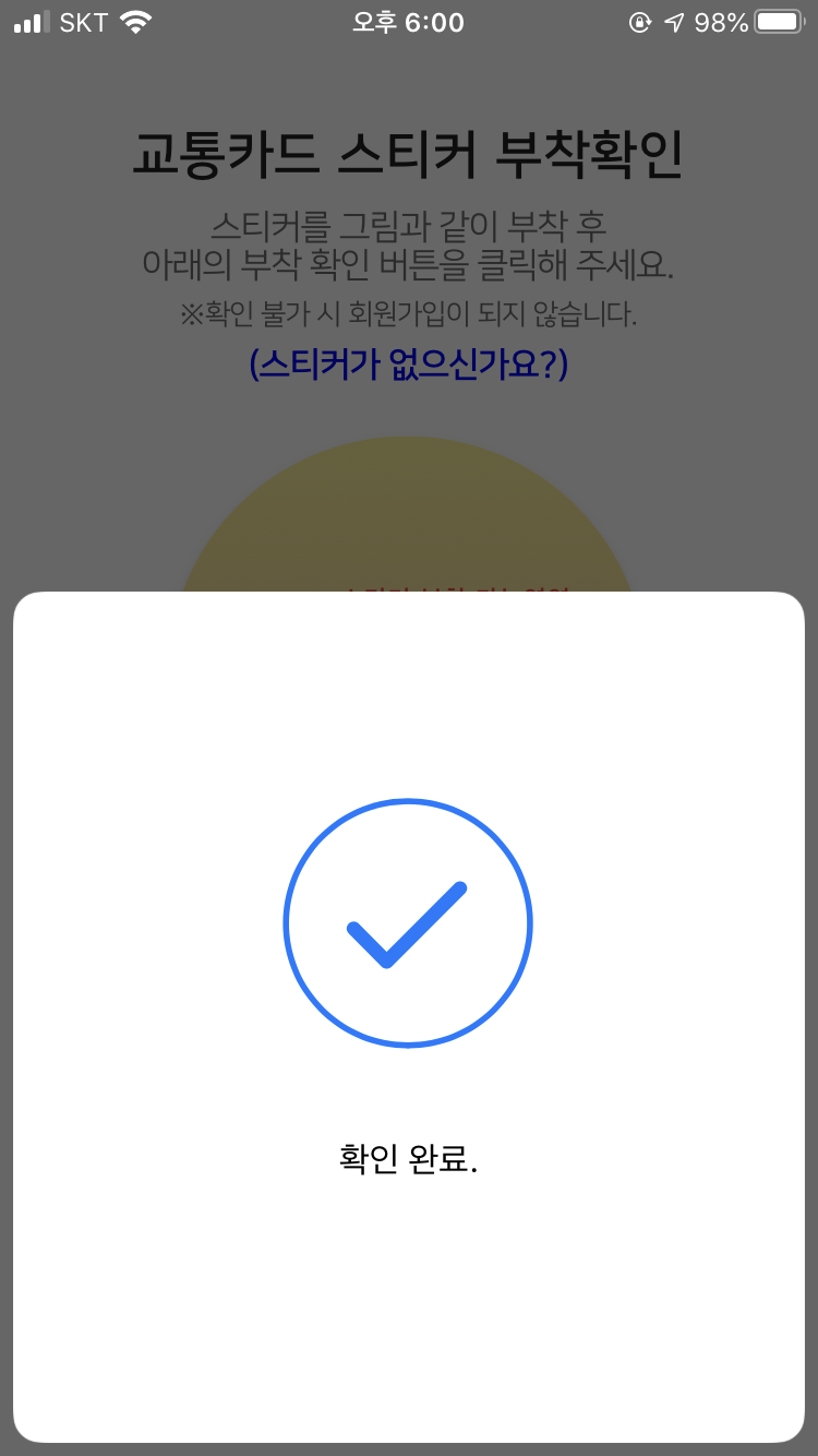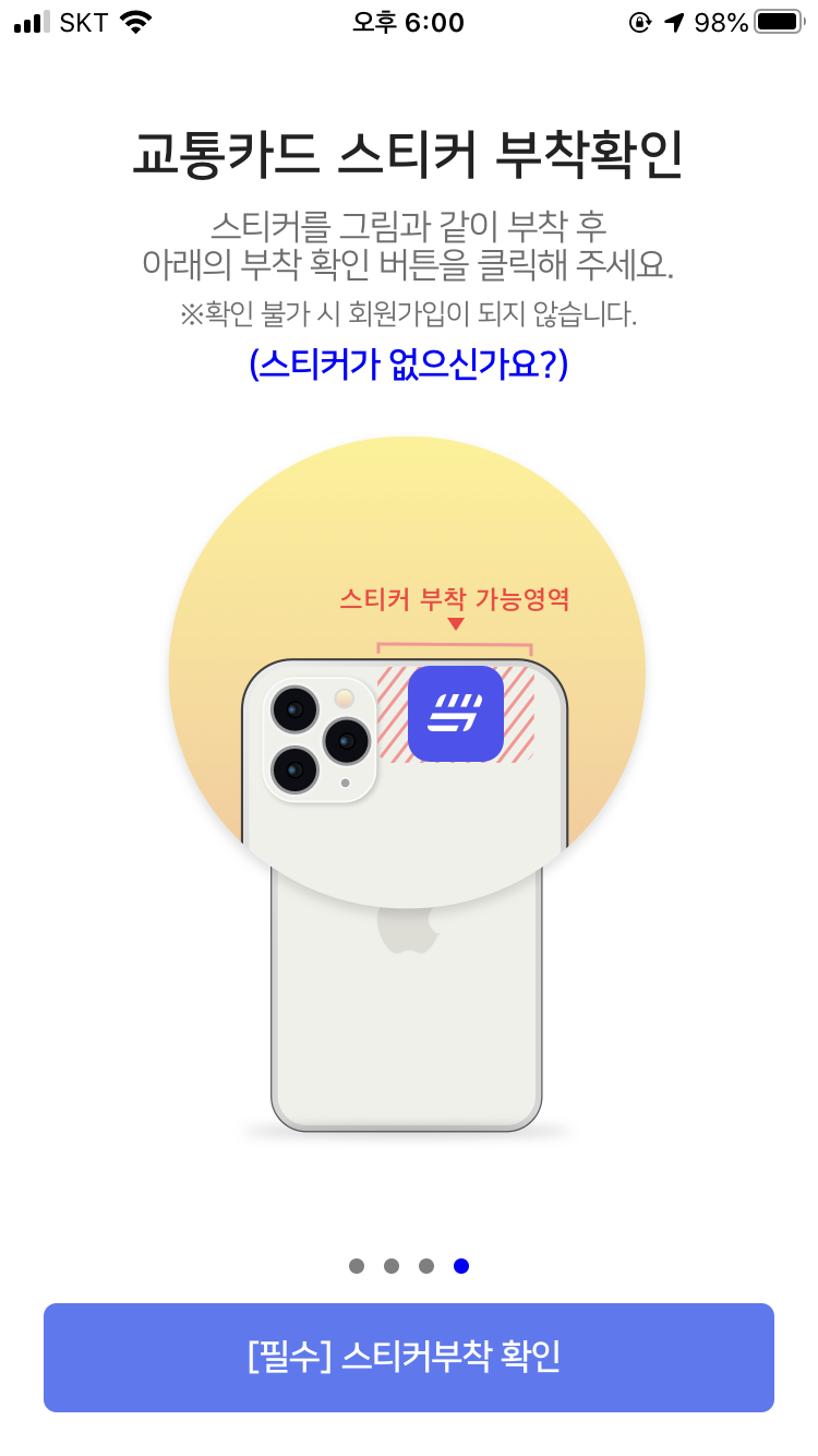 회원가입을 하기 전에 스티커를 붙이라는 안내가 먼저 뜹니다.