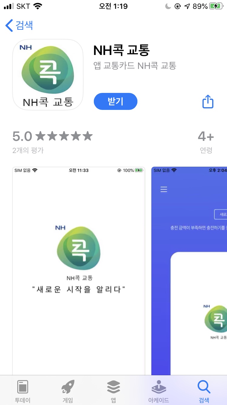 삨과 레일플러스 외에 텔큐온이 앱스토어에 올린 앱으로 'NH콕 교통'이 있는 것을 보니