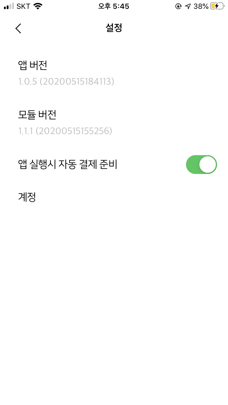 설정에서 '앱 실행시 자동 결제 준비' 항목을 눌러
