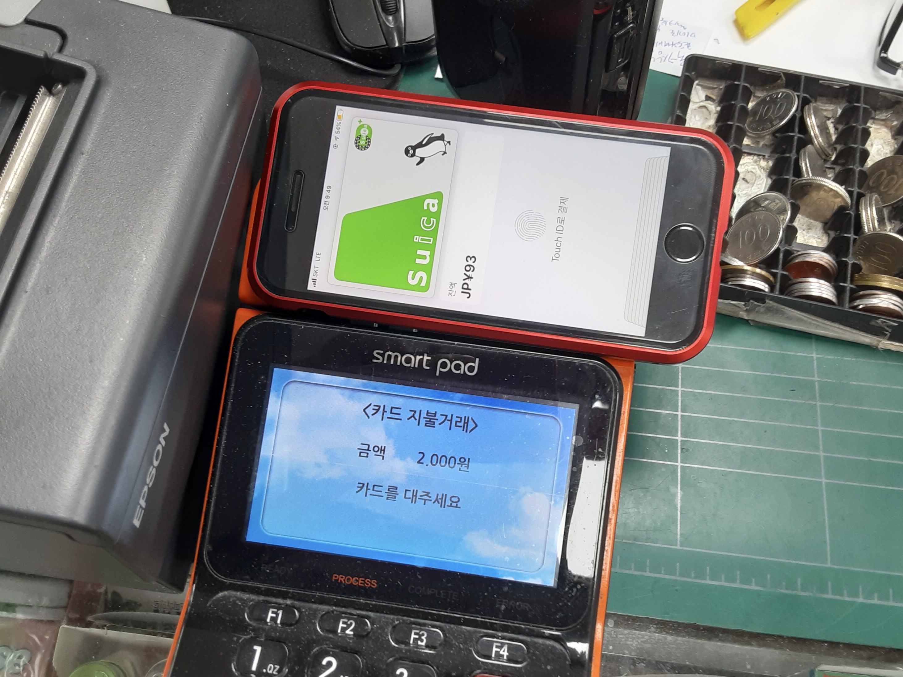 다행인 것은 삨과 모바일 스이카가 쓰는 NFC 규격이 달라