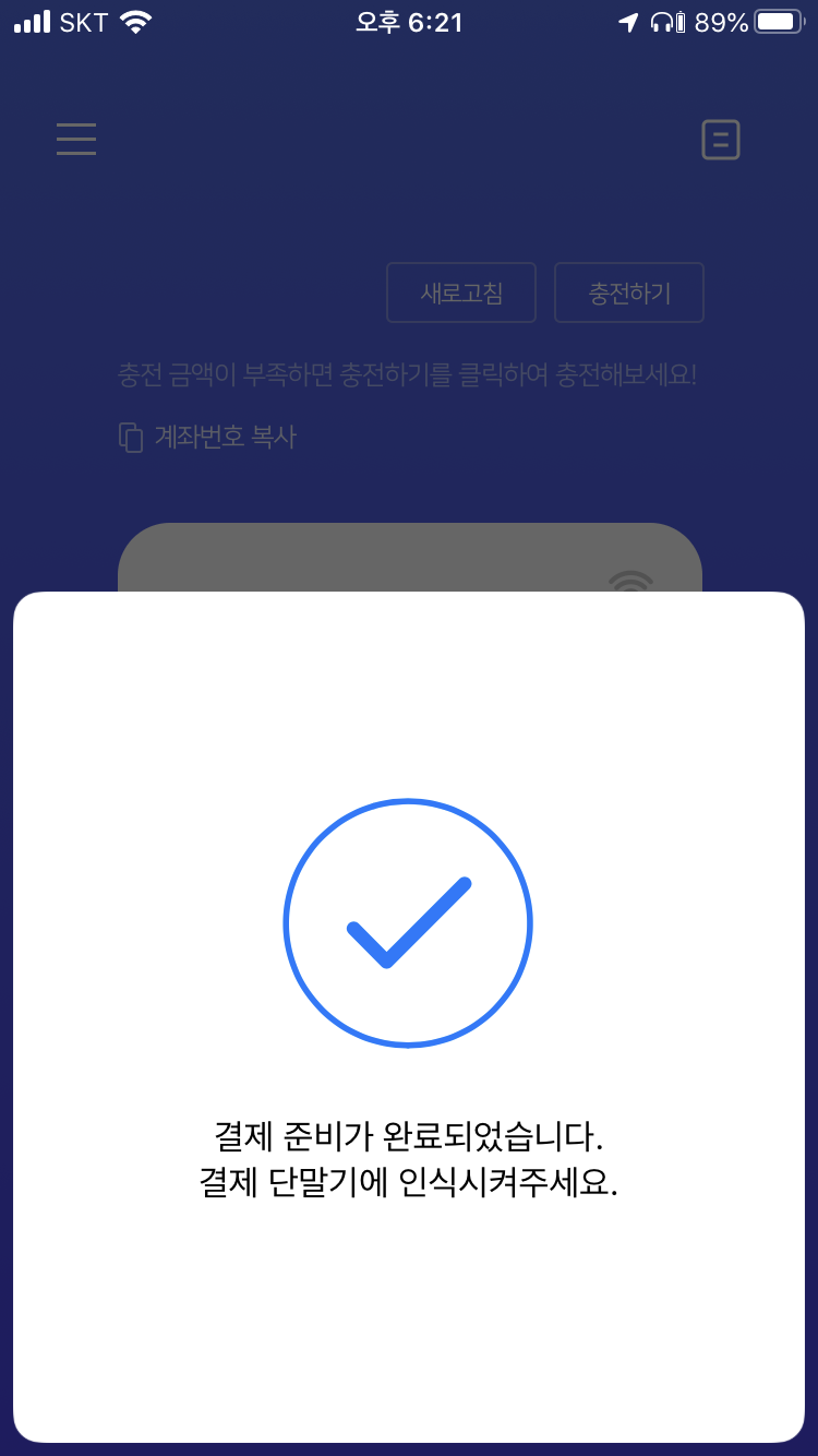 앱에서 결제 준비를 마쳤으면 화면이 꺼진 상태에서도 교통카드 단말기에서 인식이 되는데