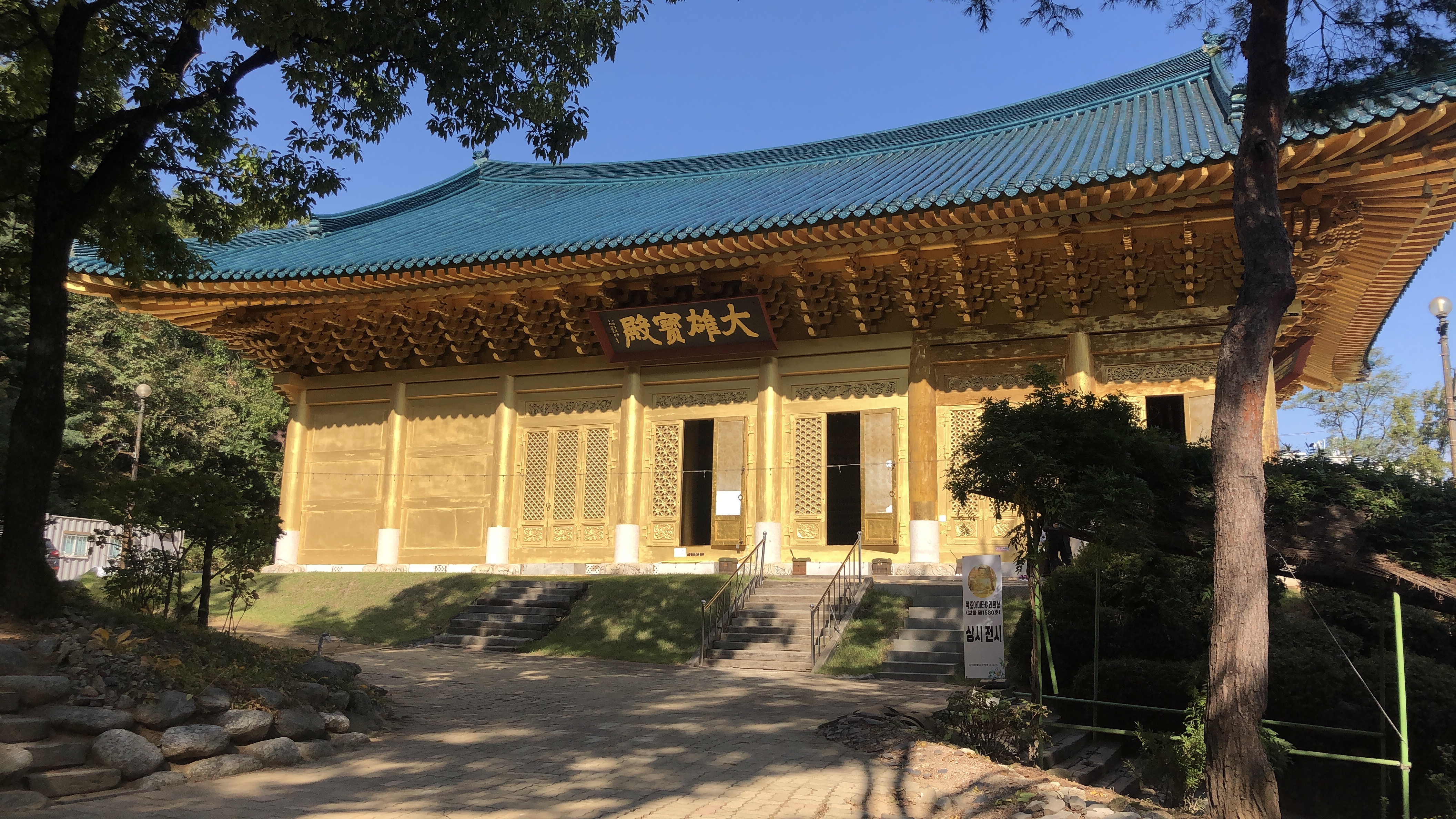이곳 대웅보전이 사진에 보이는 것과 같이 황금사원입니다.