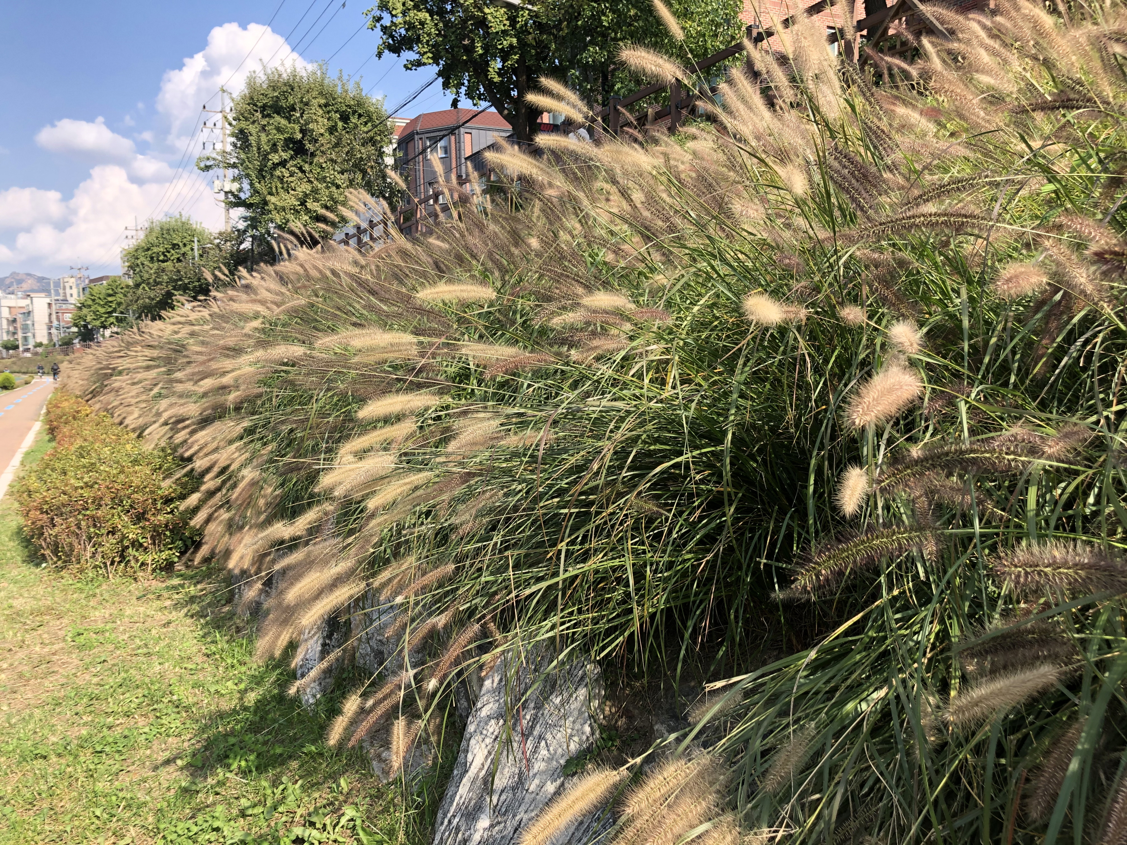 하천 둔치에 자란 강아지풀은 가을을 맞아 온몸을 갈색으로 바꾸고 있습니다.