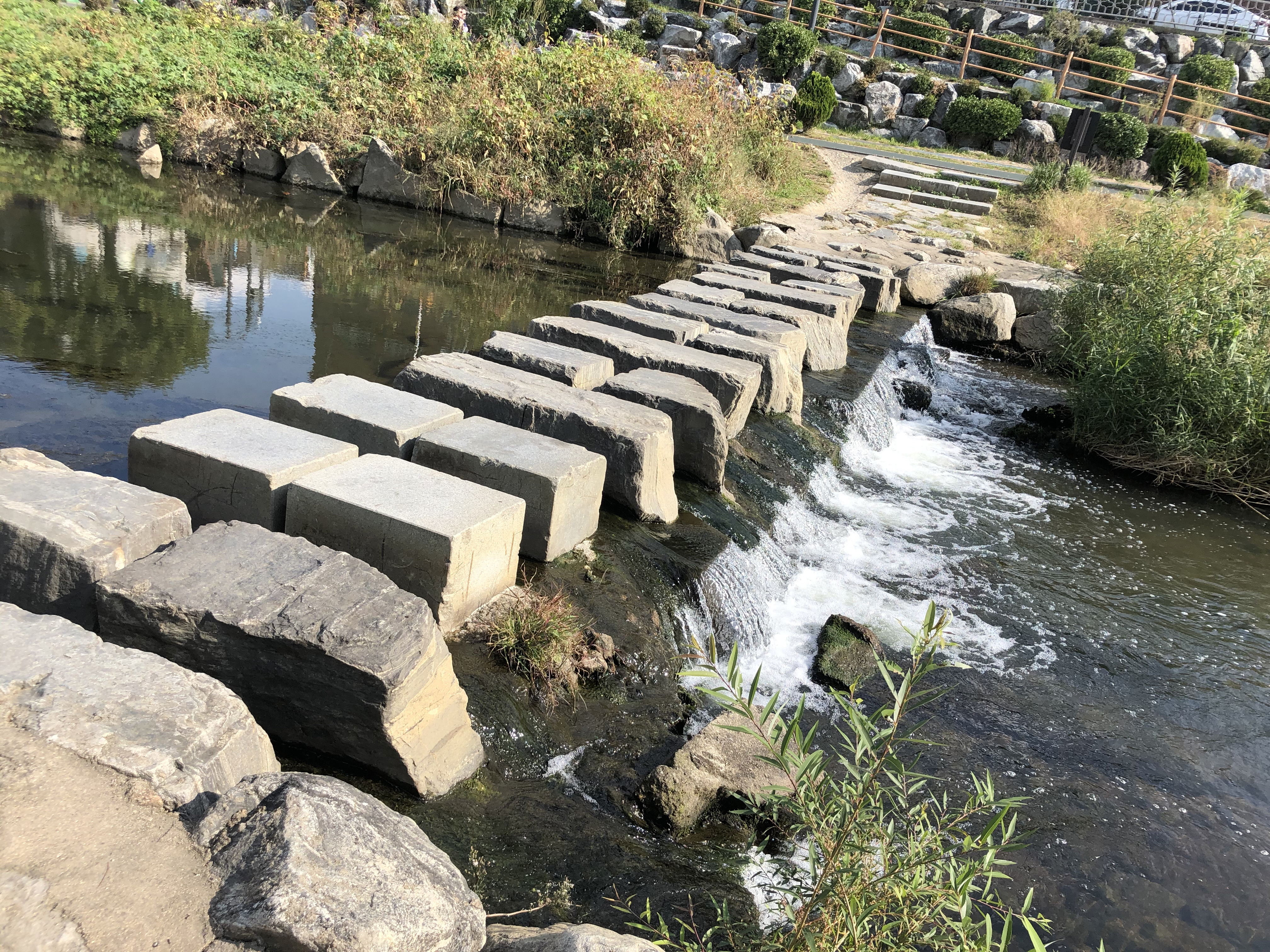 비탈길을 올라 짧은 하천 산책을 마치고