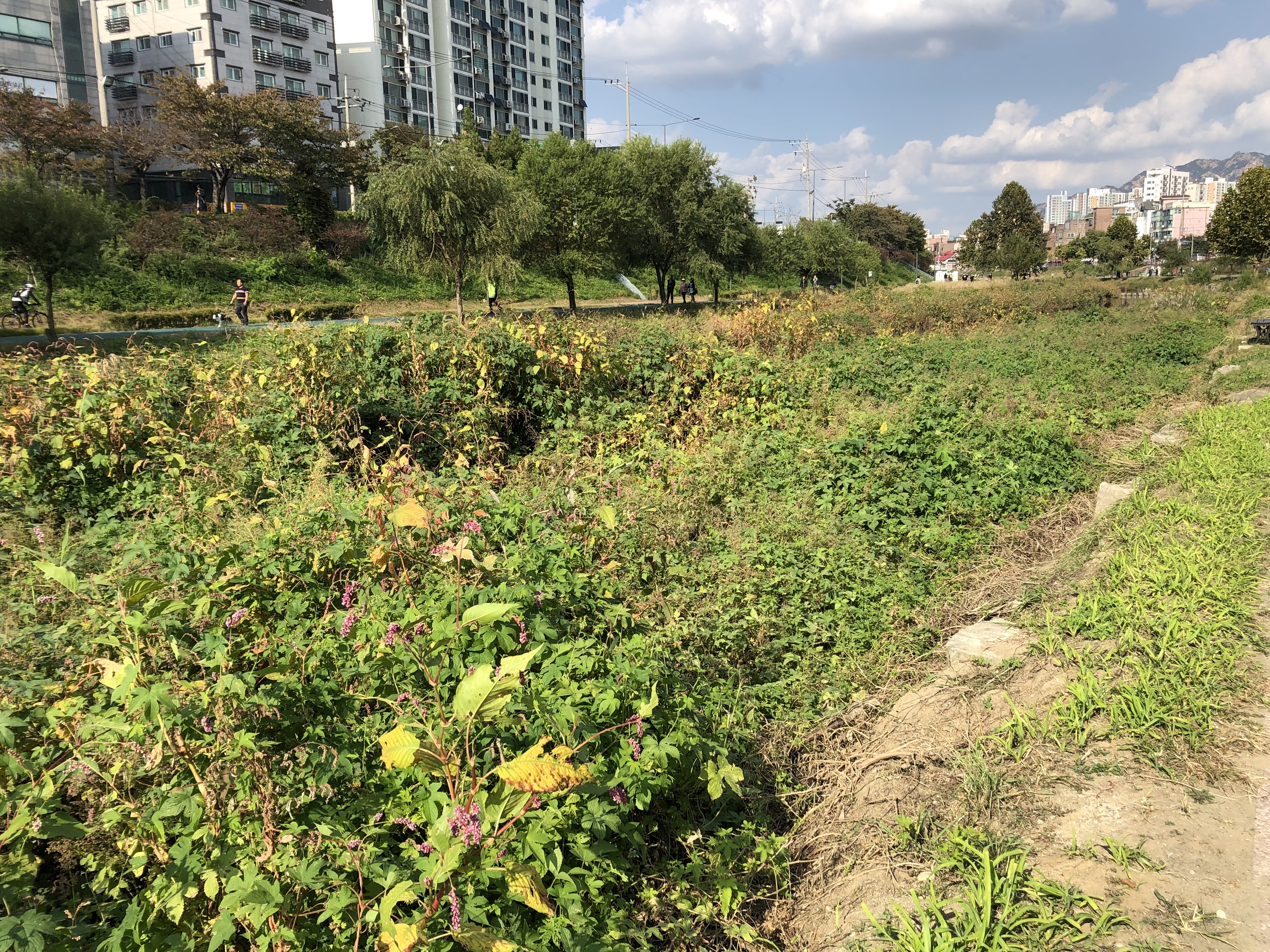 풀 구경을 하다 잠시 하천 가까이 다가가