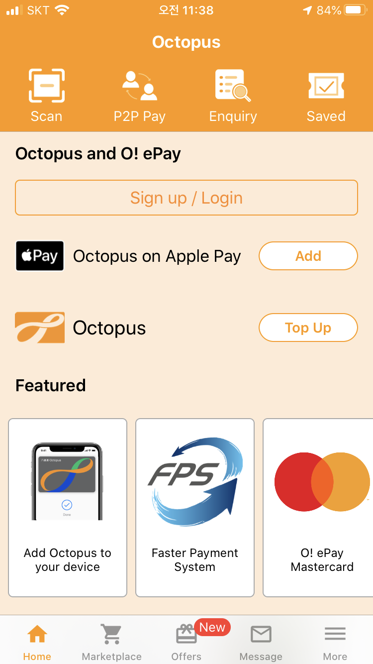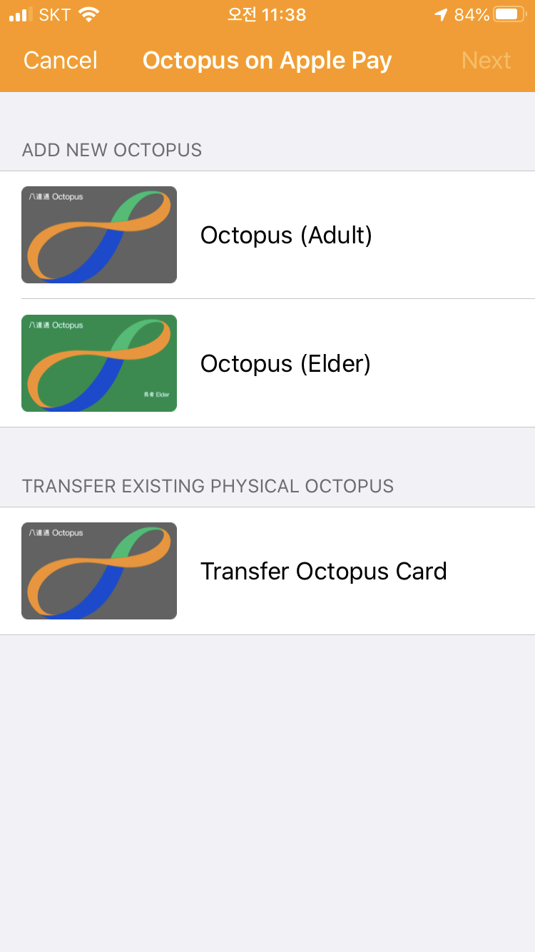 카드 유형에서 Octopus를 누르면 옥토퍼스 신규 발급 과정이 뜹니다.