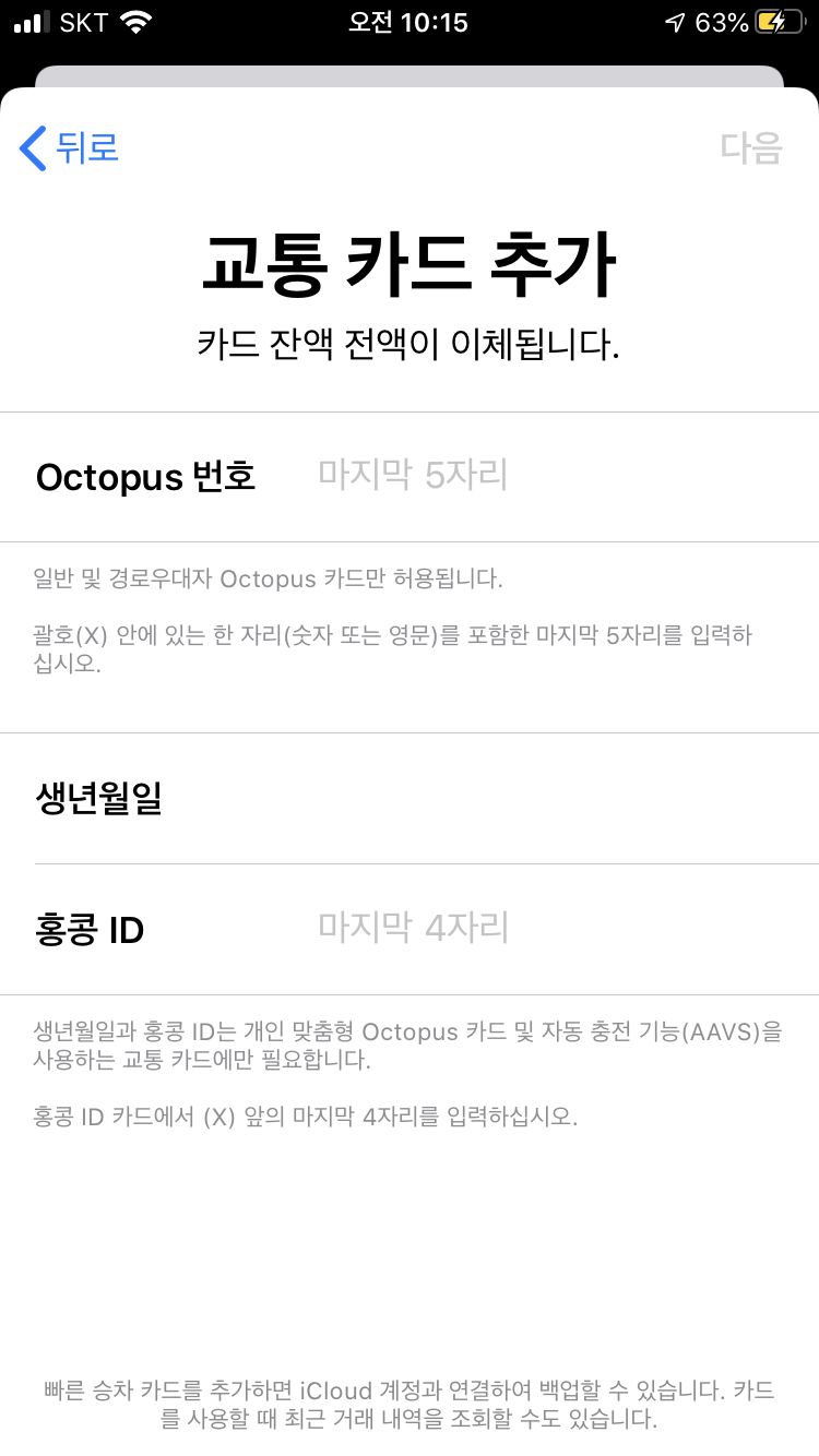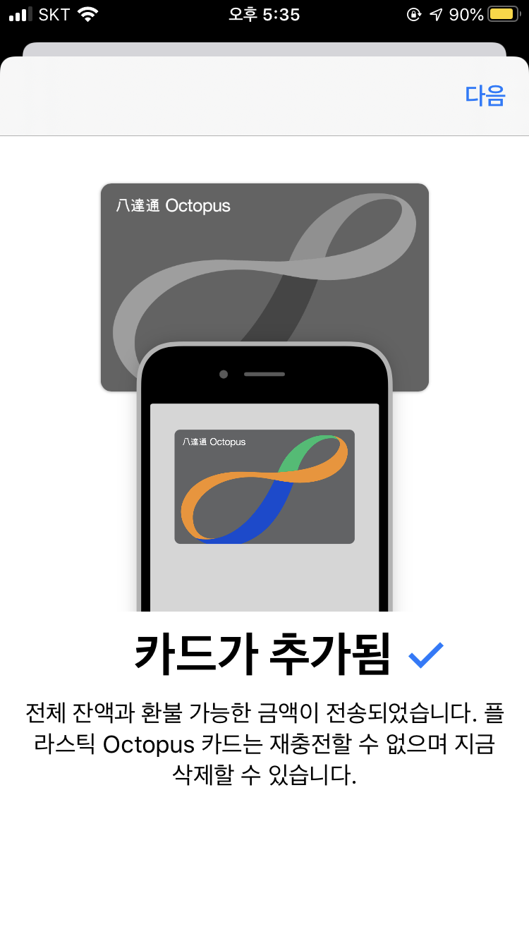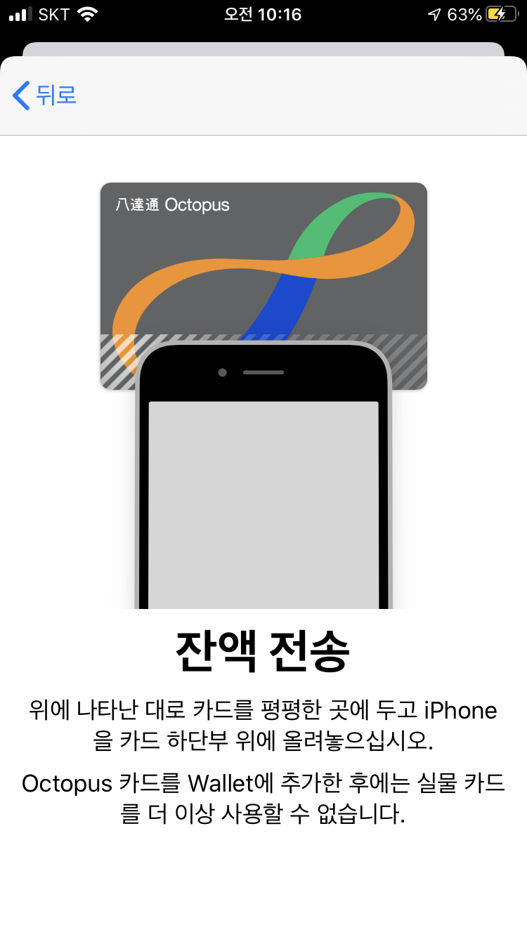 옥토퍼스도 실물 카드에서 아이폰으로 교통카드 데이터를 이전할 수 있기에