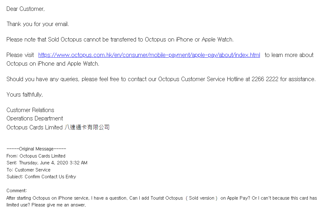 2020년 6월 2일부터 애플페이가 홍콩 교통카드인 옥토퍼스 서비스를 시작한다는 소식이 전해졌습니다.