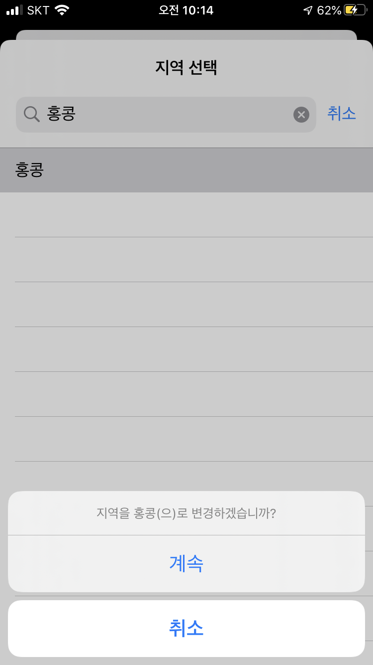 지역을 홍콩으로 바꾸고 애플페이에 카드를 넣어보죠.