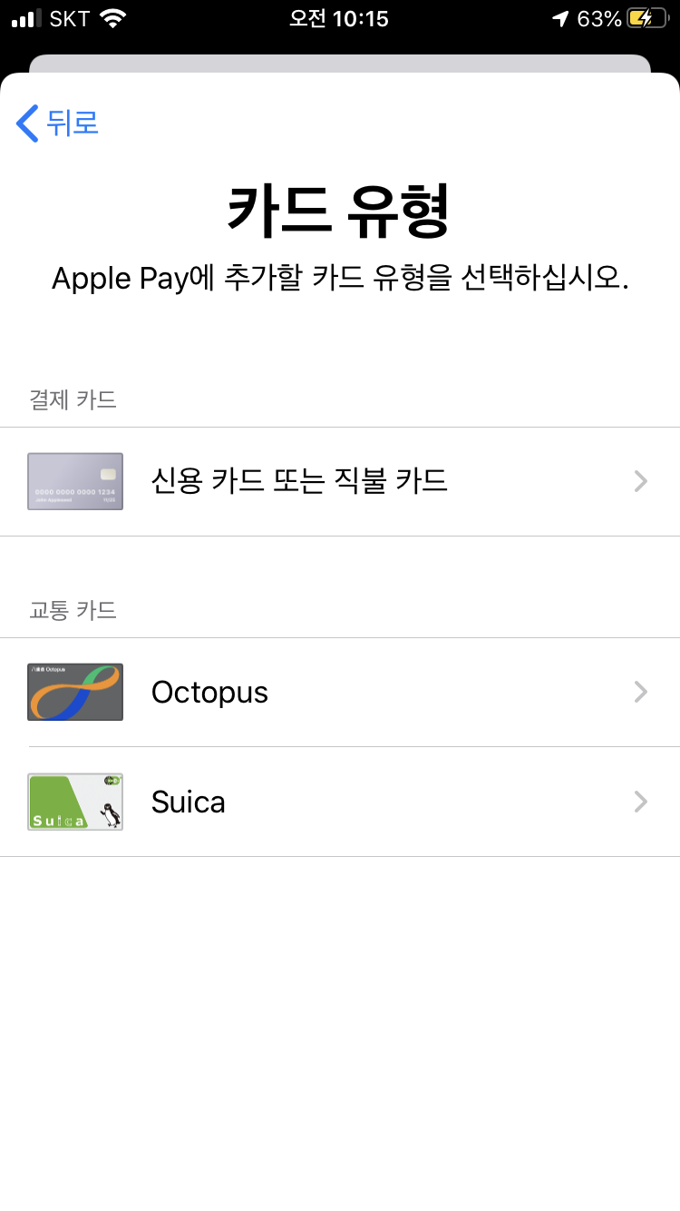 '카드를 추가할 수 없음. 이 카드는 Apple Pay를 지원하지 않습니다.'라는 안내문이 뜹니다.