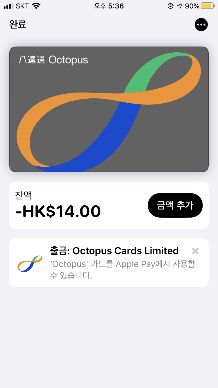 아무튼 이것으로 아이폰에 옥토퍼스 카드 넣기는 끝.