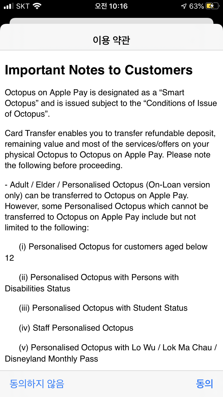어린이용 옥토퍼스나 학생용 옥토퍼스 등은 애플페이에 넣을 수 없습니다.