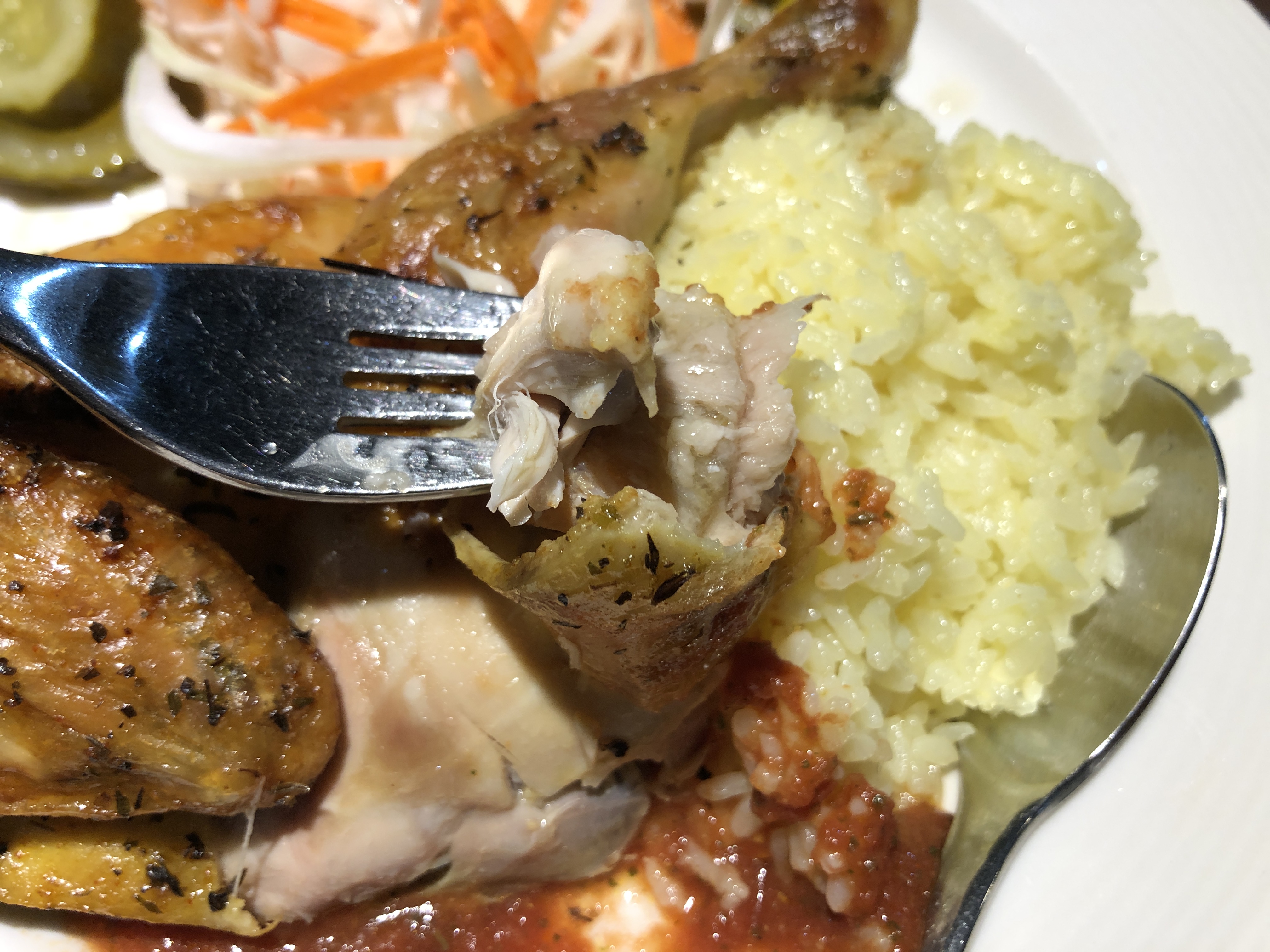닭고기를 밥과 함께 먹는 것이니 음식 자체는 맛 없을 수 없는 맛이 납니다.