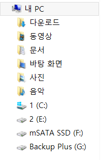 그리고 멀티부스트로 장착한 하드디스크(G드라이브)가 잘 인식됩니다.