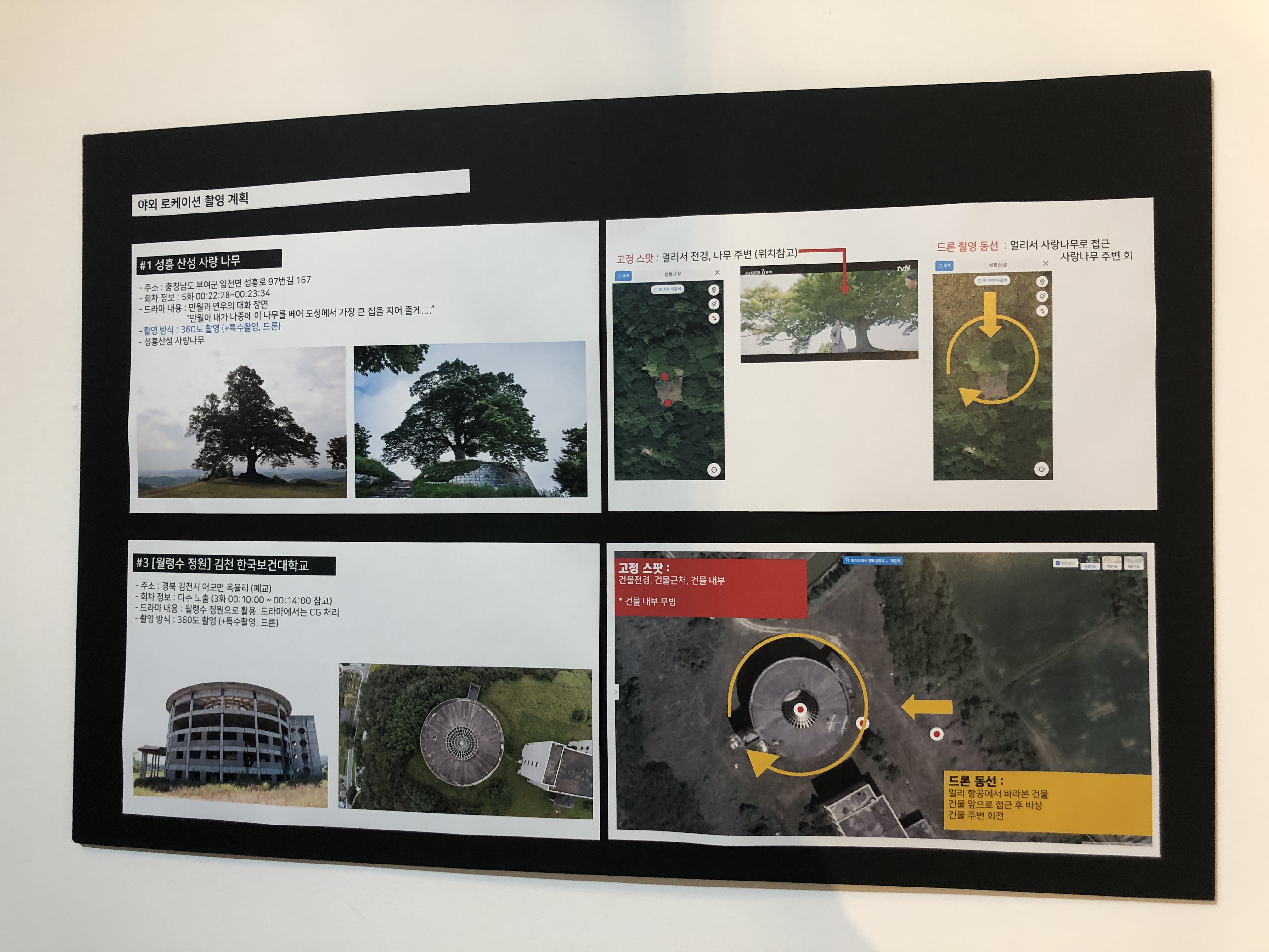 야외 로케이션 촬영계획을 담은 패널을 볼 수 있네요.