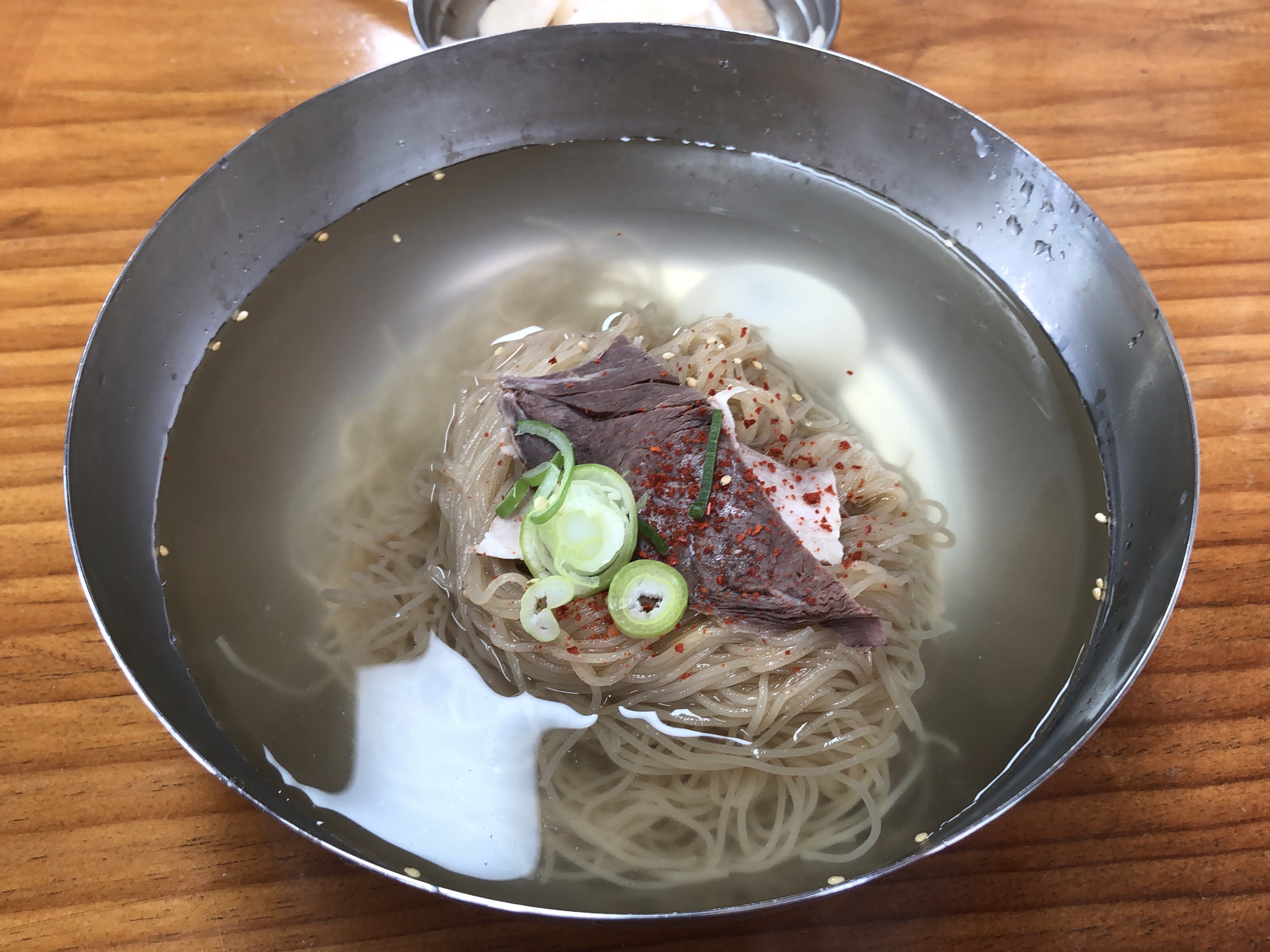 을지면옥 물냉면과 마찬가지로 고춧가루와 파 고명이 담긴 의정부파 평양냉면입니다.