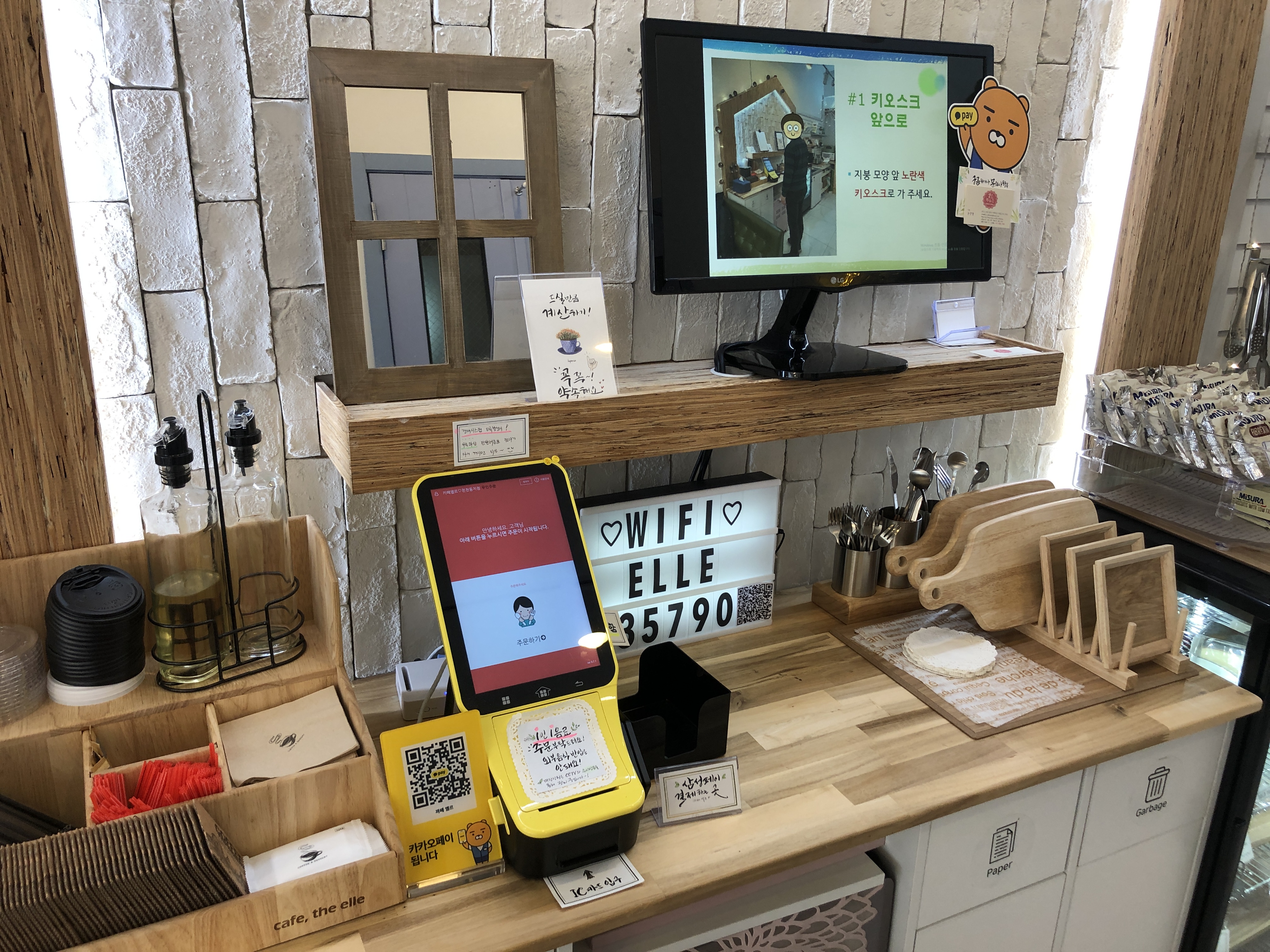 키오스크 옆 모니터에 나오는 안내를 열심히 보고 주문을 해봅니다.