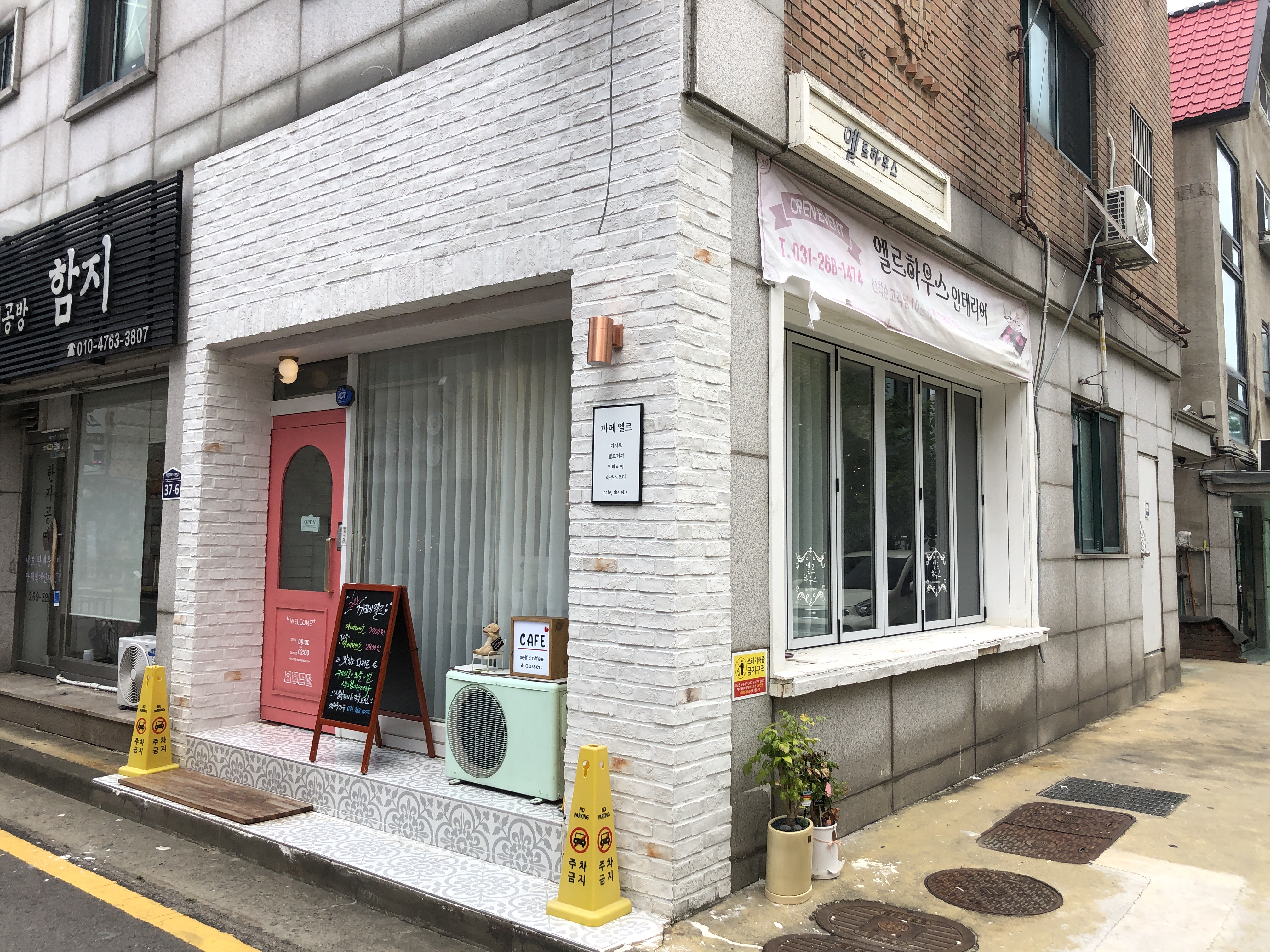 수원 천천중학교 근처 먹자골목에 있는 엘르라는 카페에 왔습니다.