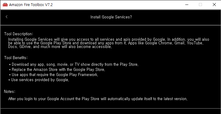 왼쪽 아래에 있는 Yes를 누르면 툴박스에서 구글 플레이 설치를 진행합니다.