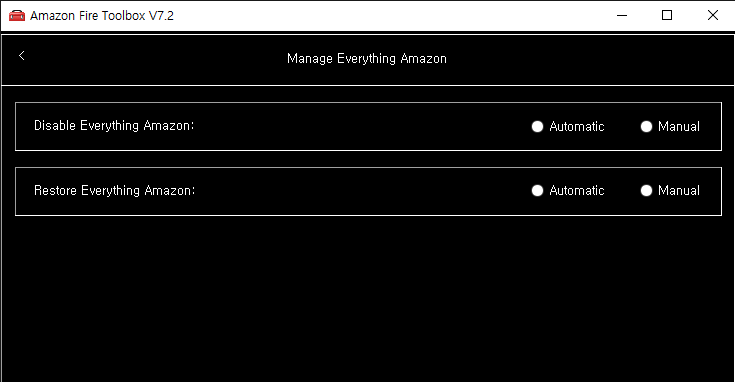 Disable Everything Amazon 항목에서 Automatic을 누르면 툴박스가 알아서 아마존 앱을 지워줍니다.